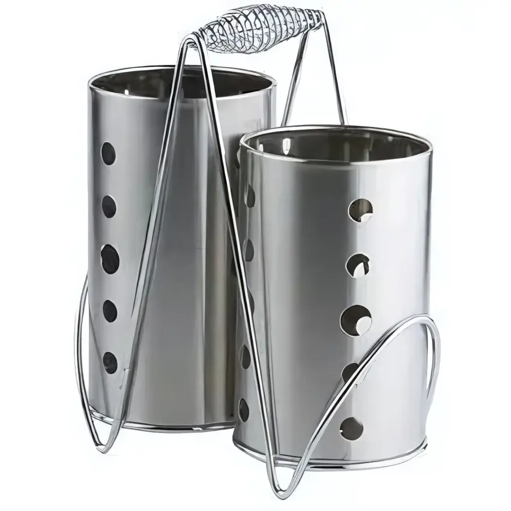 Эта практичная подставка из нержавеющей стали станет вашим надежным помощником на кухне. Вместительные цилиндры диаметром 10 см и высотой 15.5/17.5 см позволяют организовать пространство и обеспечить быструю сушку после мытья.