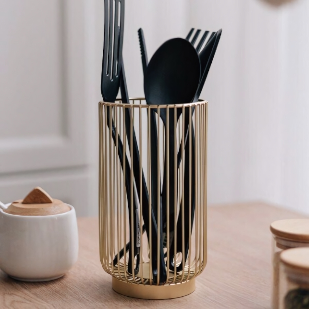Металлический органайзер Lemax создан для удобного хранения столовых приборов и кухонных принадлежностей. Стильное матово-золотое покрытие гармонично впишется в любой интерьер, превратив обычную утварь в элемент декора.