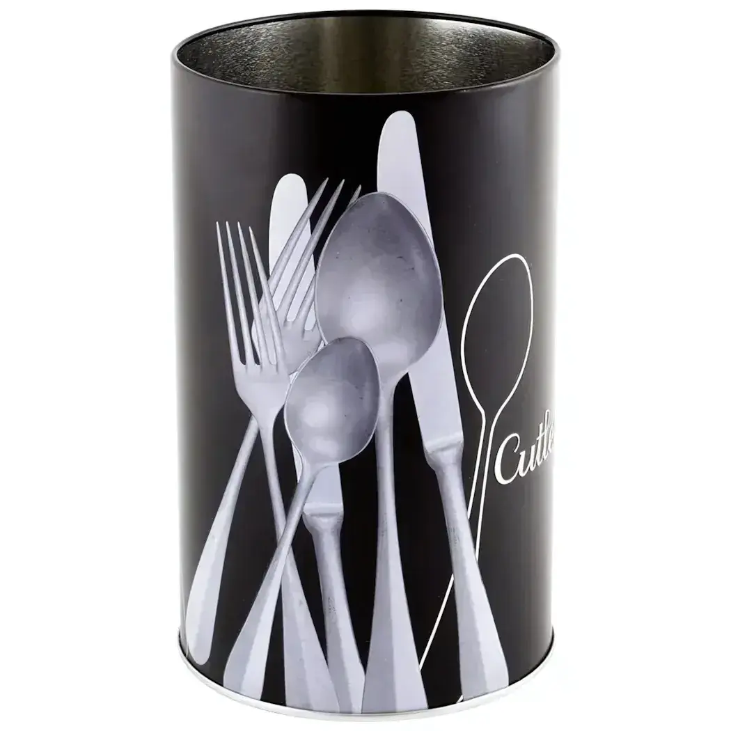 Металлическая подставка для столовых приборов с тематическим дизайном — идеальное решение для поддержания порядка на кухне. Цилиндрическая форма и продуманная конструкция позволяют компактно хранить вилки, ложки и ножи под рукой.