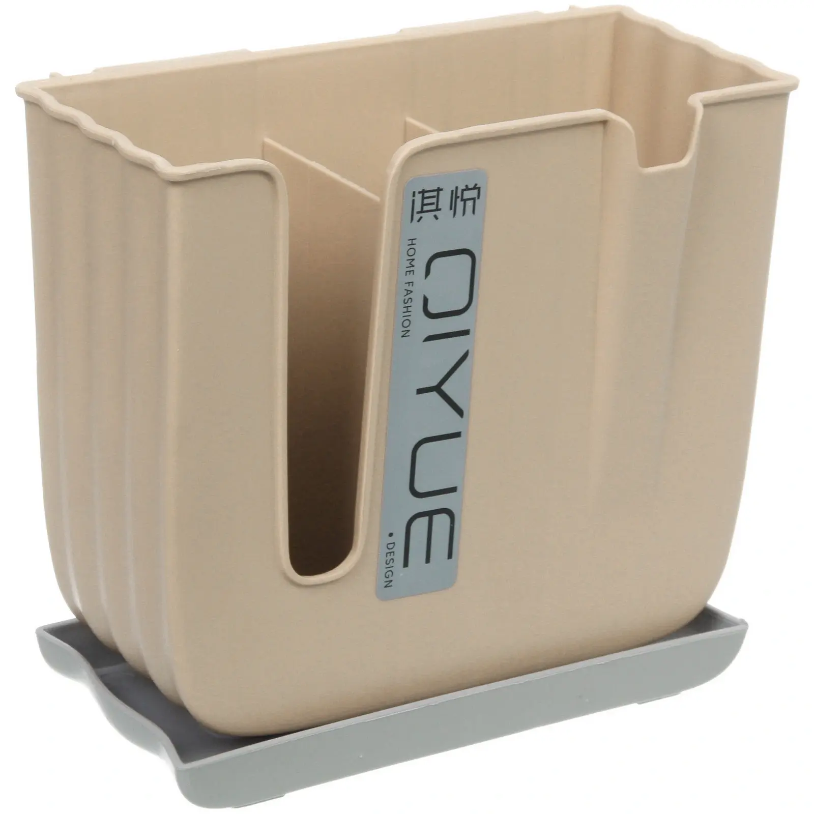 Подставка для столовых приборов "Стиль", пластик, 16*15*7,5см, с поддоном, 3 секции, разноцветный принт