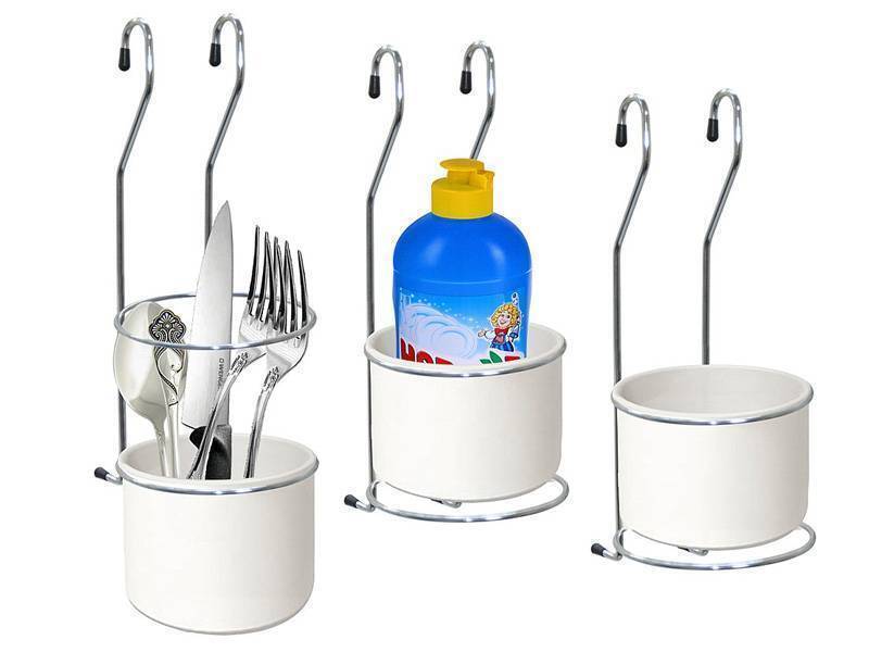 - Навесь на рейлинг в кухонной зоне для хранения ложек, вилок, ножей и других столовых приборов