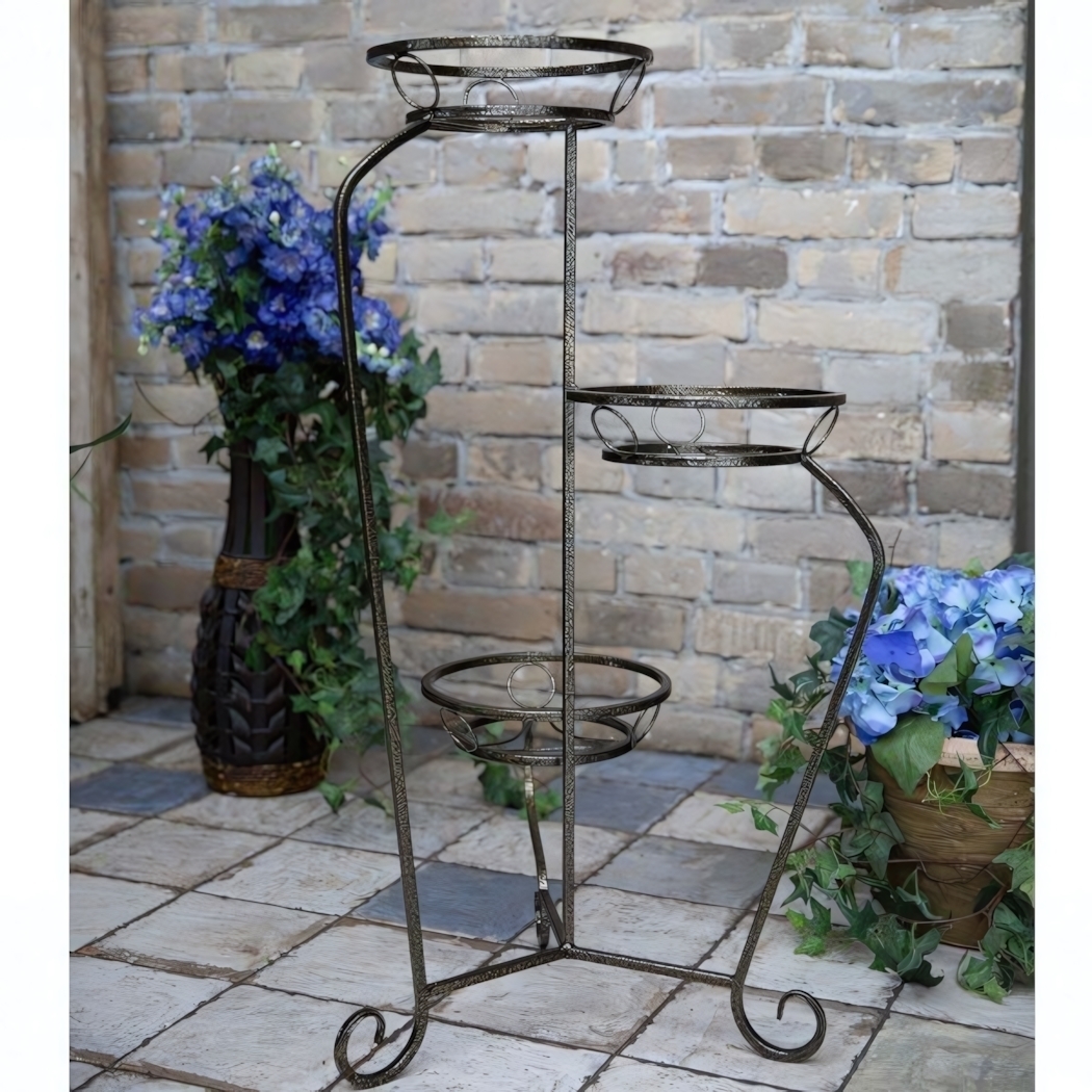 Подставка предназначена для размещения трех горшков с цветами, что позволяет создать гармоничную цветочную композицию. Она идеально подходит для использования в гостиной, на балконе или в офисе. Устойчивое основание и равномерное распределение корзинок гарантируют безопасность ваших растений.