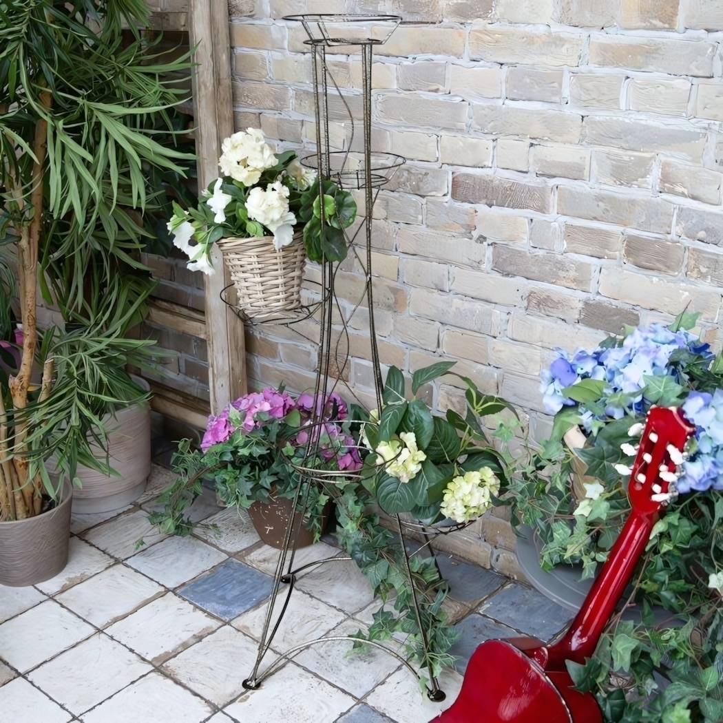 Подставка идеально подходит для размещения различных растений, включая цветы и зелень. Она поможет вам организовать пространство, создавая эффектный цветочный уголок. Подставка подходит как для домашних условий, так и для использования на балконах или в садах. Удобные посадочные места для горшков имеют размеры: 3 малых (14,5 см) и 2 средних (16,5 см), что позволяет разместить растения разных размеров.