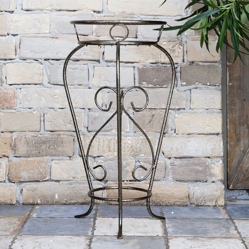 Напольная подставка для цветов помогает красиво выделить любимое растение и освободить пространство на подоконнике или мебели. Изящная форма с декоративными завитками добавляет интерьеру выразительности, а устойчивое основание обеспечивает надежную поддержку горшка.