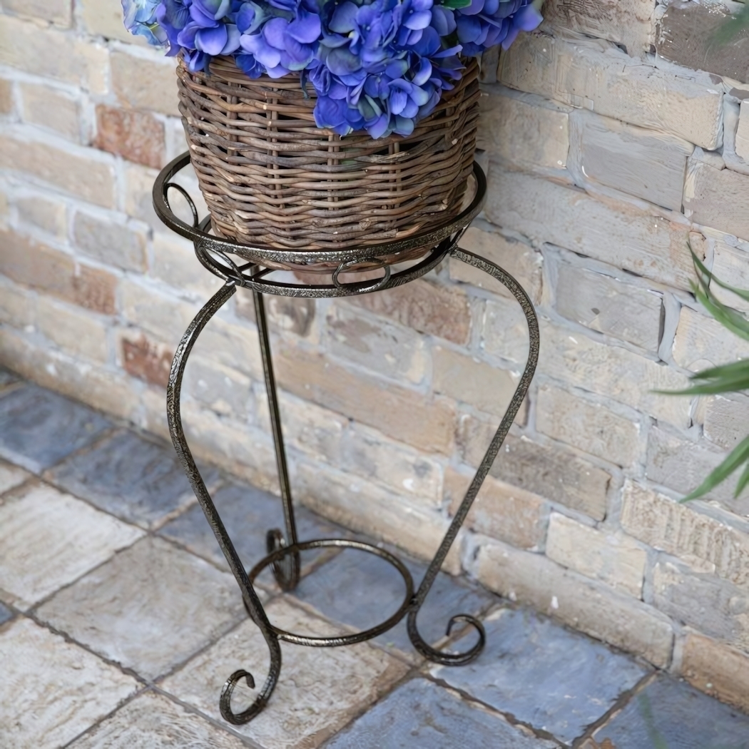 Размер корзинки: нижнее кольцо — 25,5 см, верхнее — 31 см, высота корзинки — 5 см. Общая высота подставки зависит от конструкции, а функция — безопасное и красивое размещение вашего растения. Идеальный выбор для ценителей эстетики и практичности, желающих подчеркнуть стиль интерьера и обеспечить надежную опору для своих цветов.