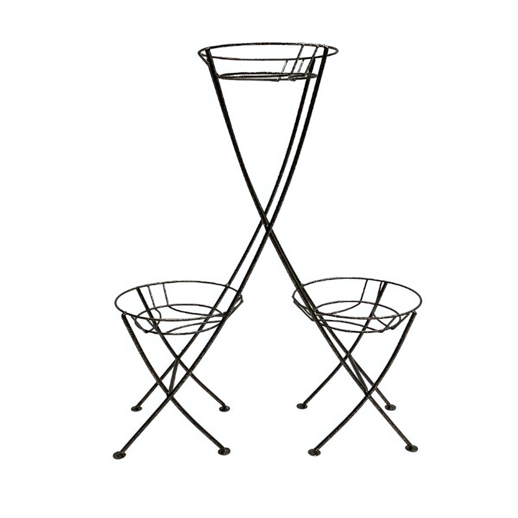 Подставка предназначена для размещения трех горшков с растениями. Она идеально подходит для тех, кто хочет добавить зелени в свое пространство, не занимая много места. Благодаря асимметричной конструкции и трем опорным ножкам, подставка устойчива и легко вписывается в любой интерьер.
