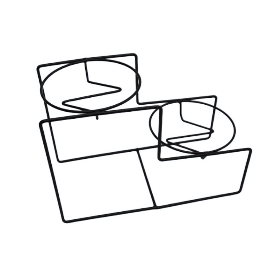 Подставка выполнена из металла, что обеспечивает прочность и долговечность конструкции. Цельный каркас из металлических прутьев сохраняет устойчивость и выдерживает ежедневное использование. Черное покрытие придает изделию аккуратный внешний вид и делает его универсальным для любых цветовых решений интерьера.