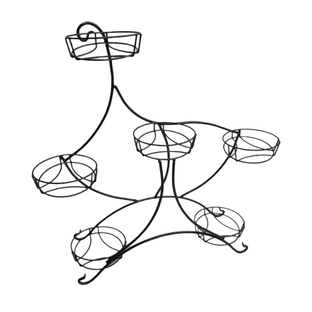 Подставка подходит для размещения комнатных цветов в горшках с посадочным размером до 16,5 см. Шесть корзинок расположены на разной высоте и в разных направлениях, благодаря чему растения получают больше света и не затеняют друг друга. Модель удобно использовать на подоконнике, тумбе или столе — она помогает экономить пространство и поддерживать порядок.