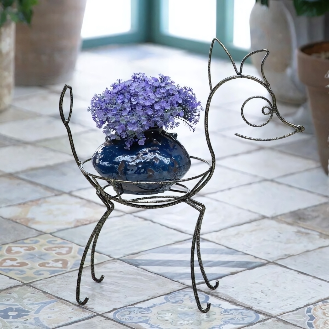 Подставка для цветов "Лисенок", металл, черная, диаметр 14.5см