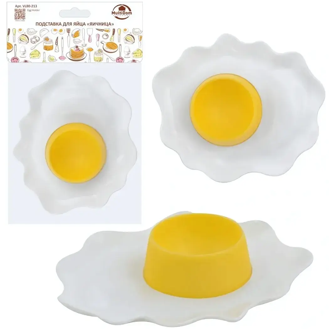 Подставка для яйца 'Яичница' пластиковая, 12х14х3см, белая/желтая
