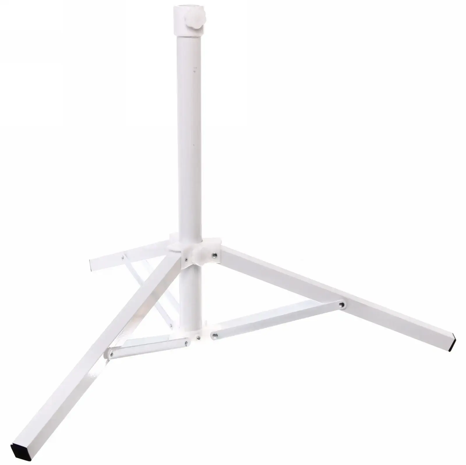 Подставка имеет высоту 54 см и состоит из центральной вертикальной трубы и трех устойчивых опор, что гарантирует надежность и безопасность. Регулируемая гайка в верхней части позволяет легко устанавливать зонт, а резиновые накладки на концах опор предотвращают скольжение и повреждение поверхности.