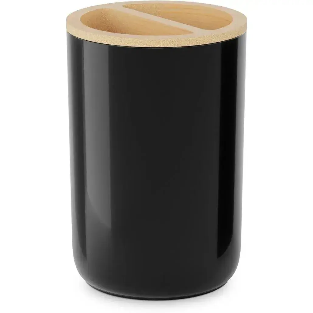 Изделие состоит из двух частей: верхняя секция из бамбука с разделителями и гладкий черный корпус. Все элементы обработаны безопасным лаком, что исключает появление сколов и заусенцев.