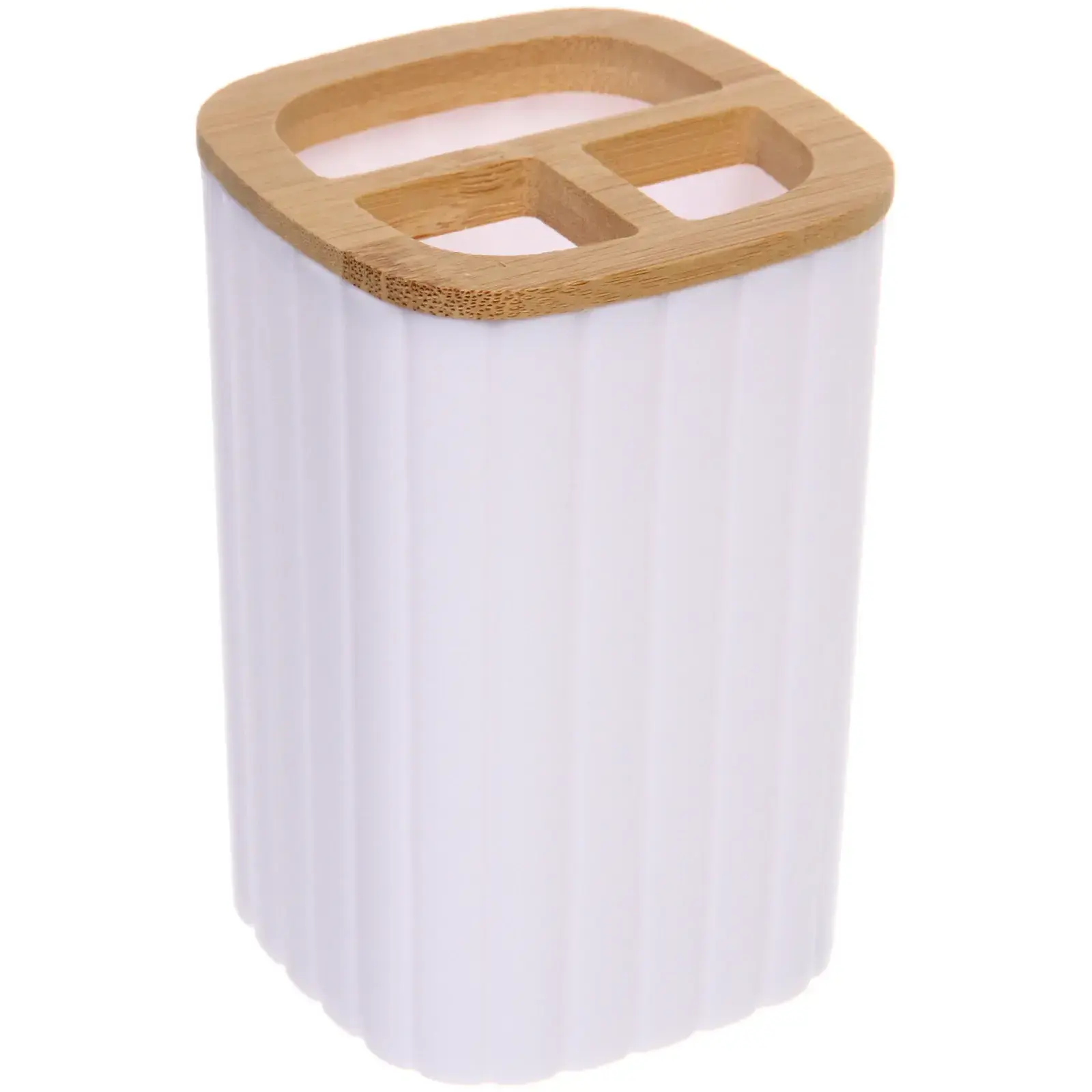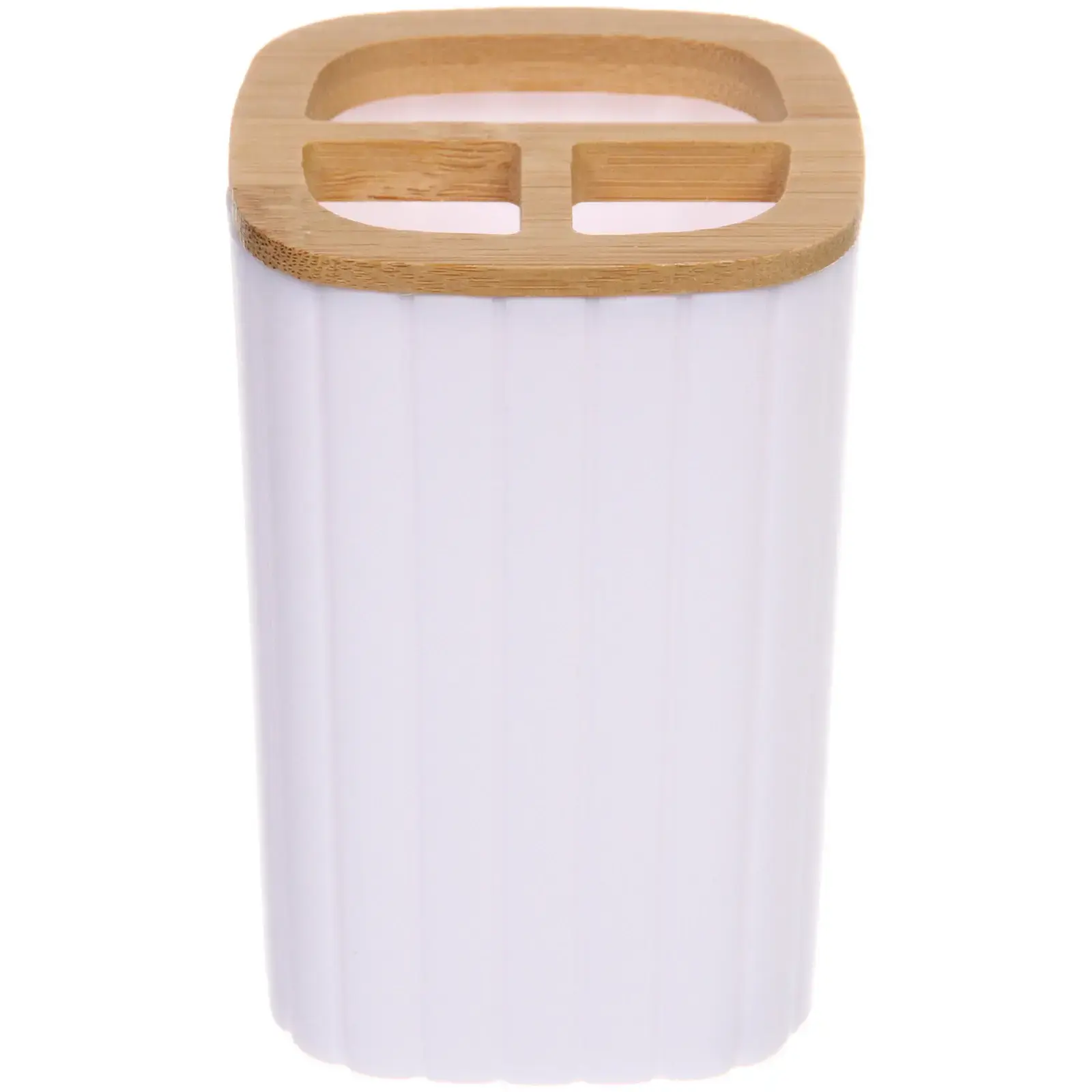 Подставка для зубных щеток 'Барио', белая, пластик/бамбук, компактная и гигиеничная