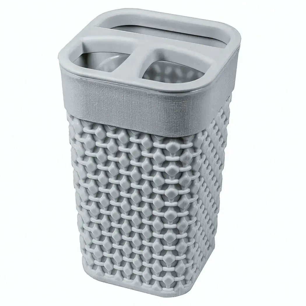 Фактурная поверхность с эффектом плетения добавляет тактильной привлекательности, а приглушенный серый оттенок «шторм» маскирует возможные загрязнения. Особенность конструкции – увеличенное расстояние между отверстиями для щеток, что исключает их соприкосновение.