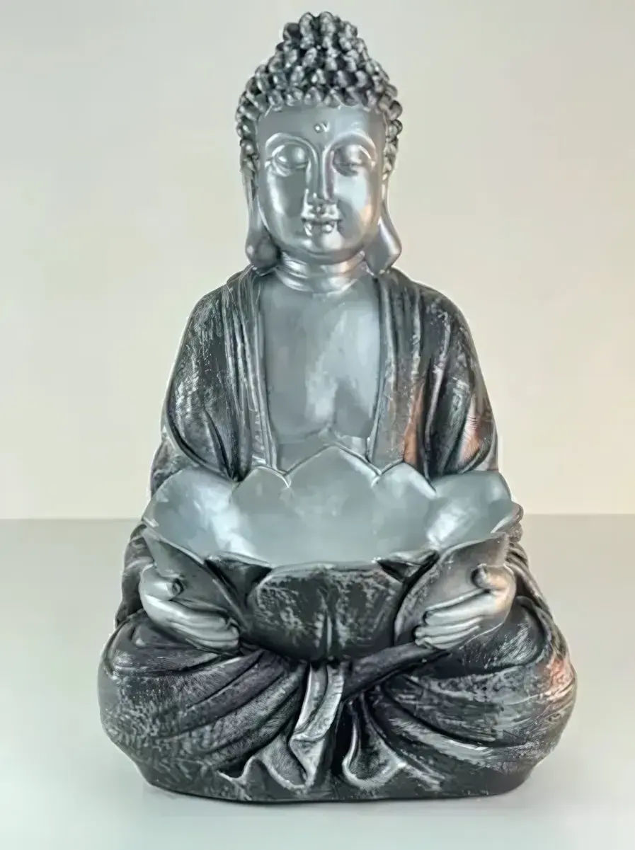 Ощутите гармонию и уют, создавая особую атмосферу с декоративной подставкой "Будда с лотосом". Серебристо-серый оттенок матовой поверхности легко впишется в любой интерьер, а практичная форма позволяет удобно использовать изделие для хранения мелких предметов, свечей или как стильный самостоятельный элемент декора. Эмоциональный крючок — это спокойствие и элегантность, которые вы вводите в пространство благодаря этому аксессуару.