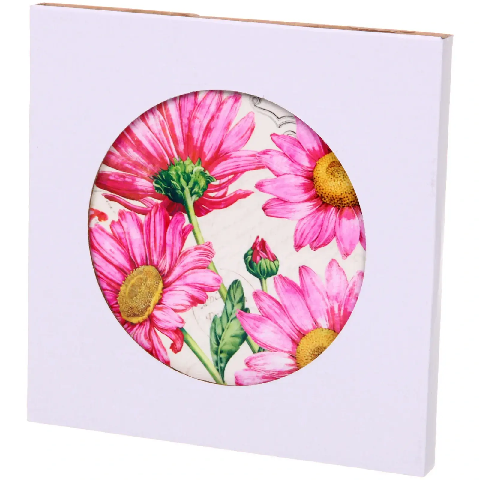 Подставка керамическая 16см 'Герберы', цвет белый/розовый, защита от жара