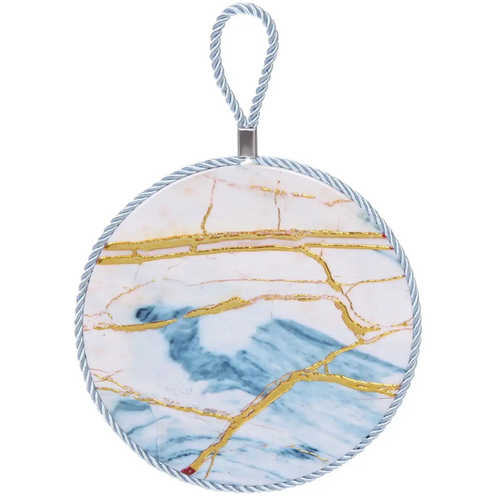 Эта керамическая подставка не только защищает ваши поверхности от перегрева, но и добавляет стильный акцент в интерьер. С диаметром 16 см и голубым мраморным узором, она станет незаменимым элементом на вашей кухне, обеспечивая комфорт и удобство в использовании.