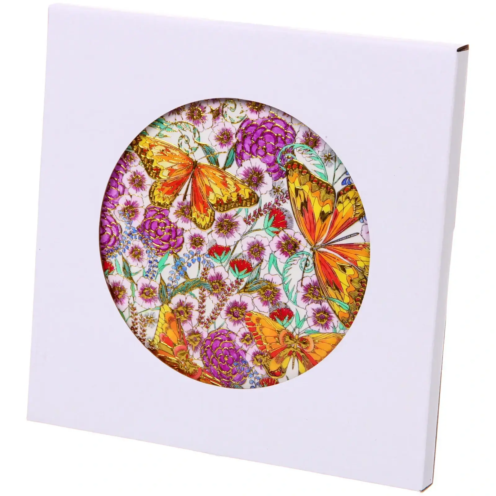 Подставка керамическая 18 см «Бабочки в цветах» — это не просто аксессуар, а стильный элемент, который добавит уют и красоту вашей кухне. Она защищает поверхность стола от горячих кастрюль и сковородок, а также служит великолепным декоративным элементом. Яркие изображения бабочек и цветов на подставке создают атмосферу весны и радости, что делает её идеальным выбором для любого интерьера.