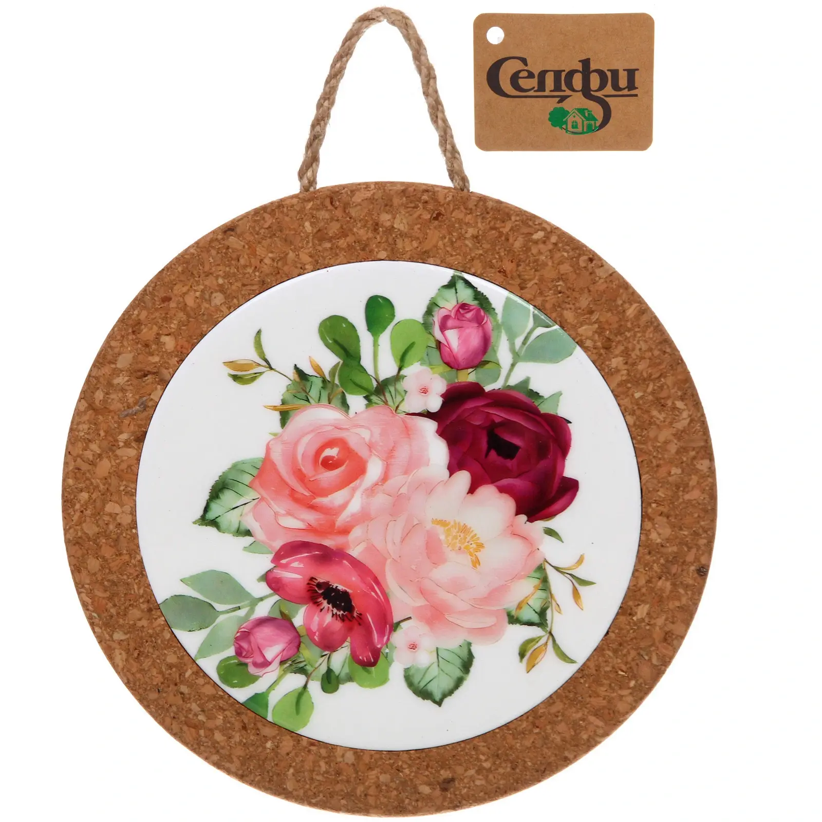Диаметр подставки — 19 см, идеально подходит для большинства кухонной посуды. Материалы: керамика и натуральная пробка, легкая и устойчивая к высоким температурам. Шнурок надёжно закреплён, выдерживает ежедневное использование. Украсьте кухню функциональной вещью, которая прослужит долго и не потеряет привлекательности. Элегантный «розовый букет» всегда украсит ваш стол.