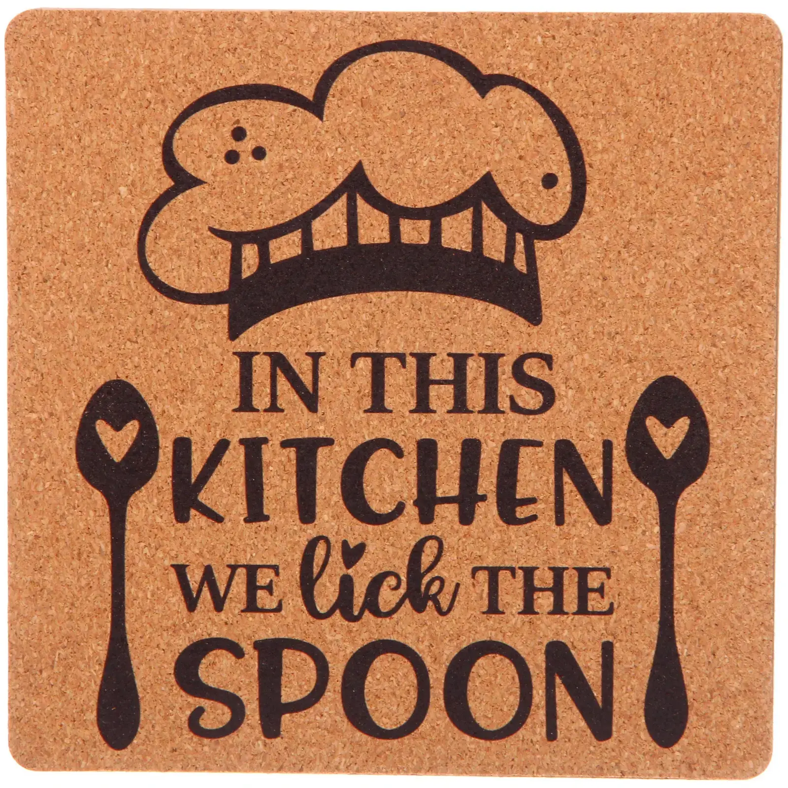 - Декоративный элемент: оригинальный дизайн с изображением шеф-повара и надписью «IN THIS KITCHEN WE LICK THE SPOON» добавляет индивидуальности вашему интерьеру.