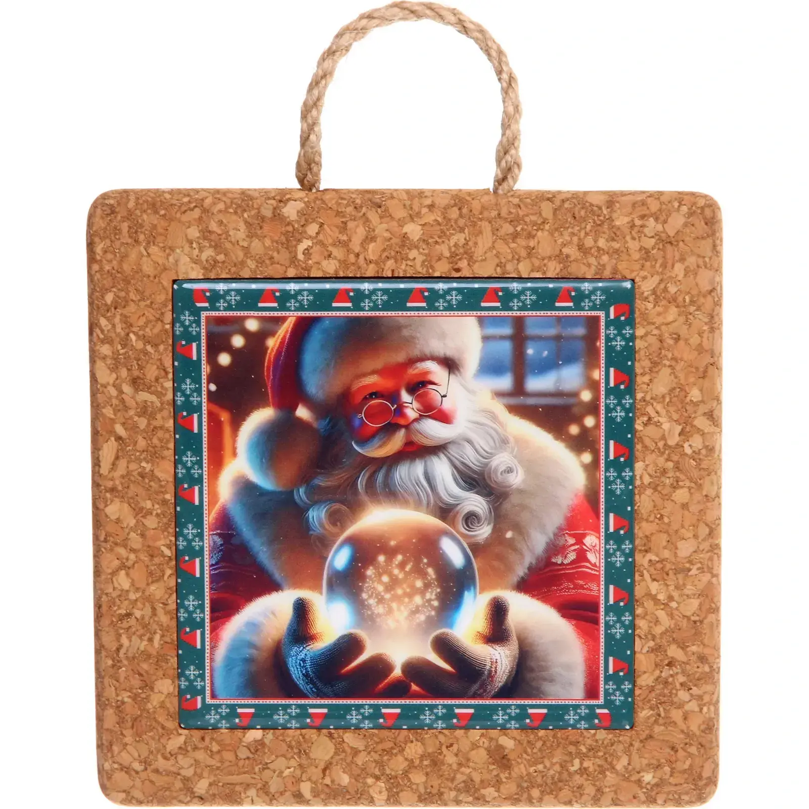 Подставка под горячее 15х15см "Капелька счастья", керамика/пробка, новогодний декор