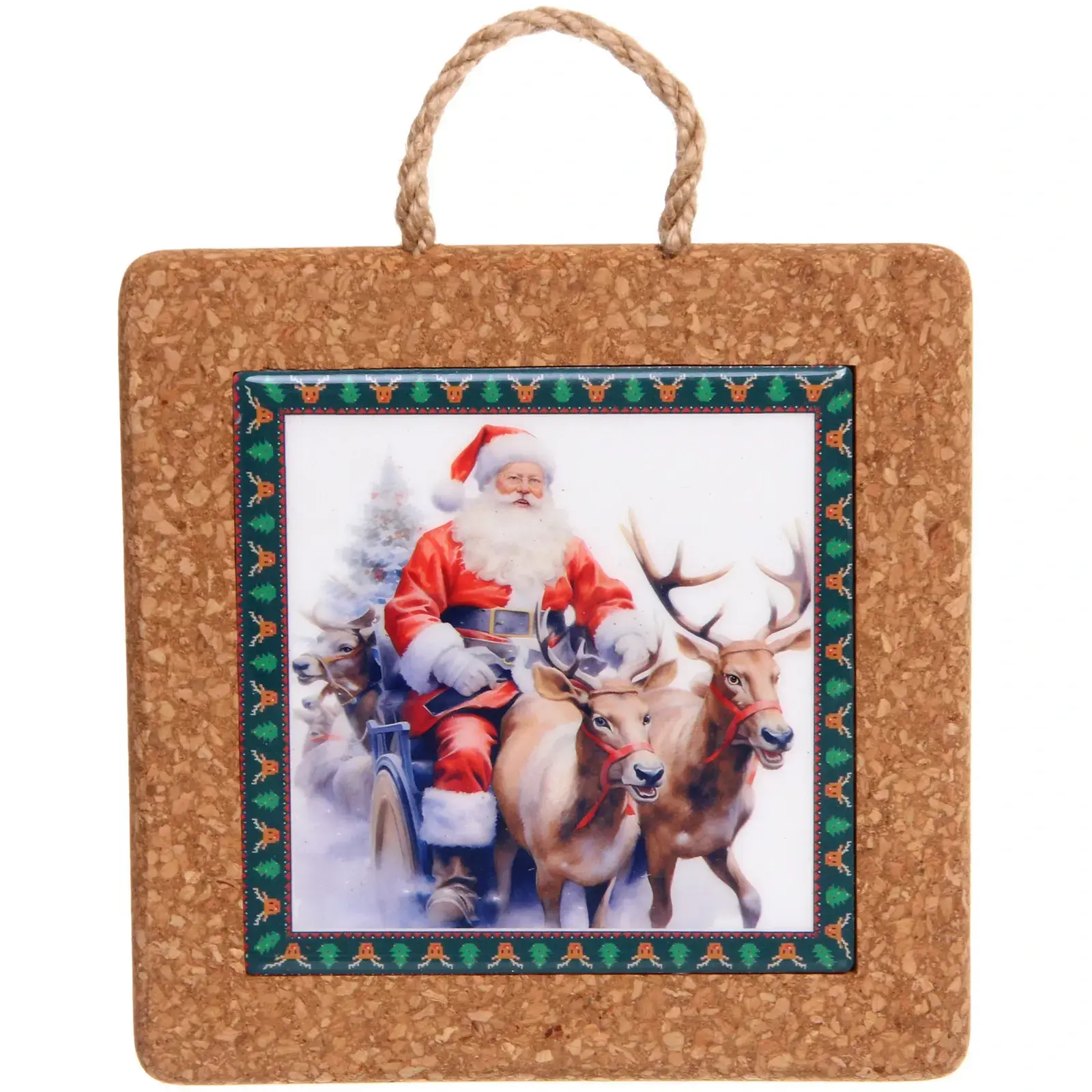 Комбинация натуральной пробки и качественной керамики обеспечивает отличную теплоизоляцию. Пробковая основа надежно защищает поверхности от царапин и теплового воздействия, а керамическая вставка с праздничным рисунком создает особую атмосферу.