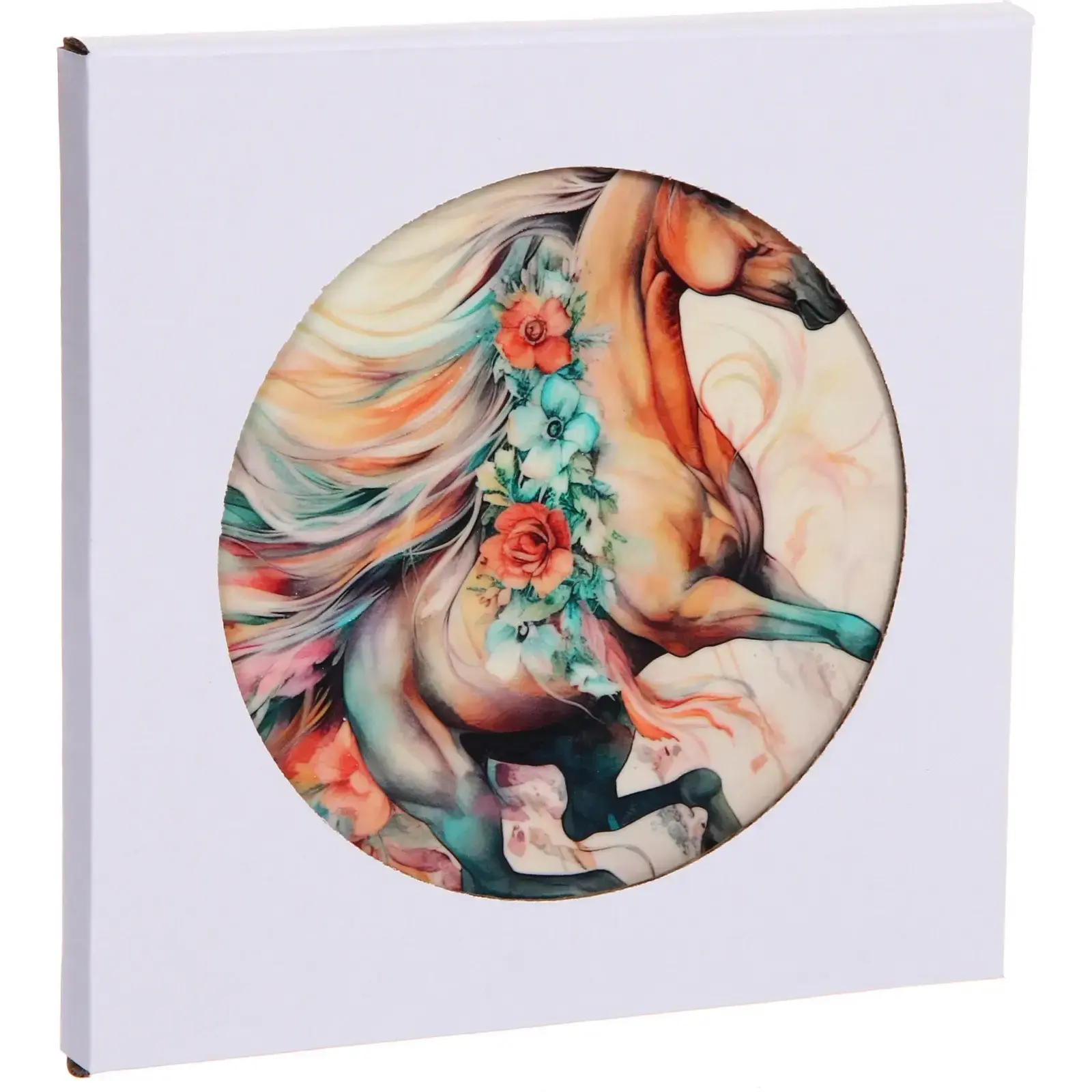 Элегантная керамическая подставка под горячее станет не только практичным аксессуаром на вашей кухне, но и стильным элементом декора. Авторский дизайн с изображением грациозной лошади привнесет нотку изысканности в повседневную сервировку.