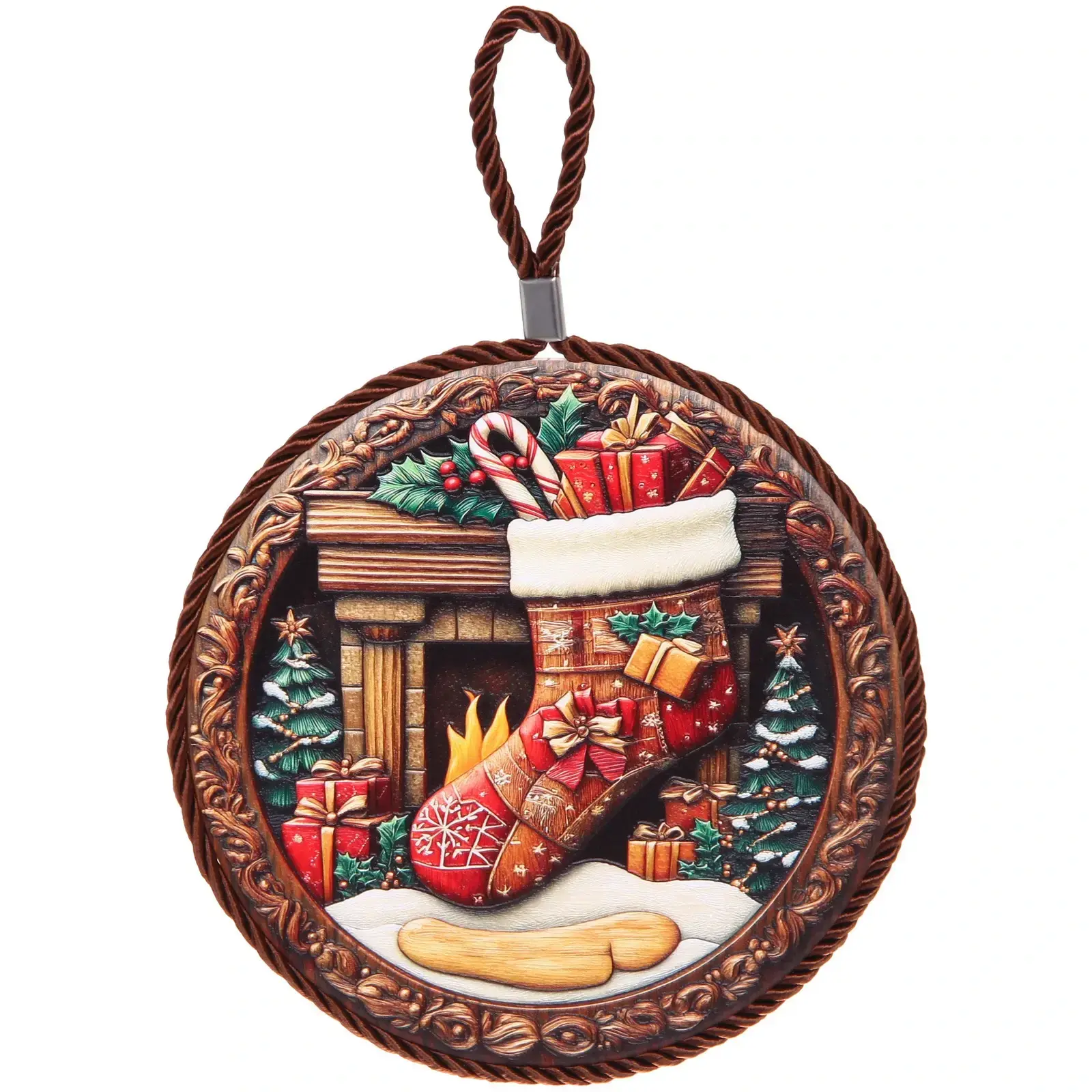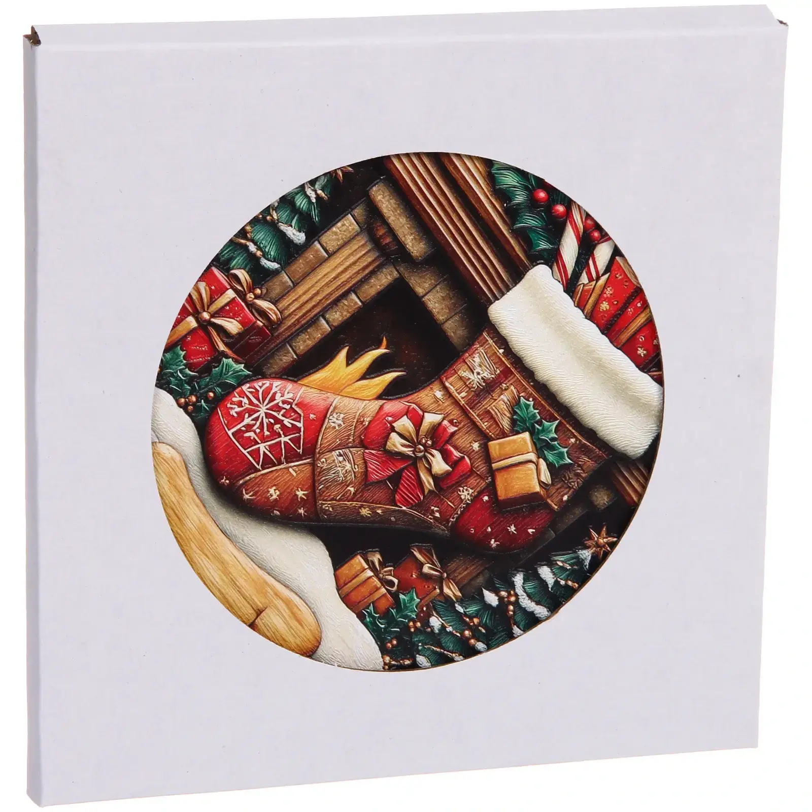Подставка под горячее керамическая 16см, "Рождественский носок", с пробковым дном