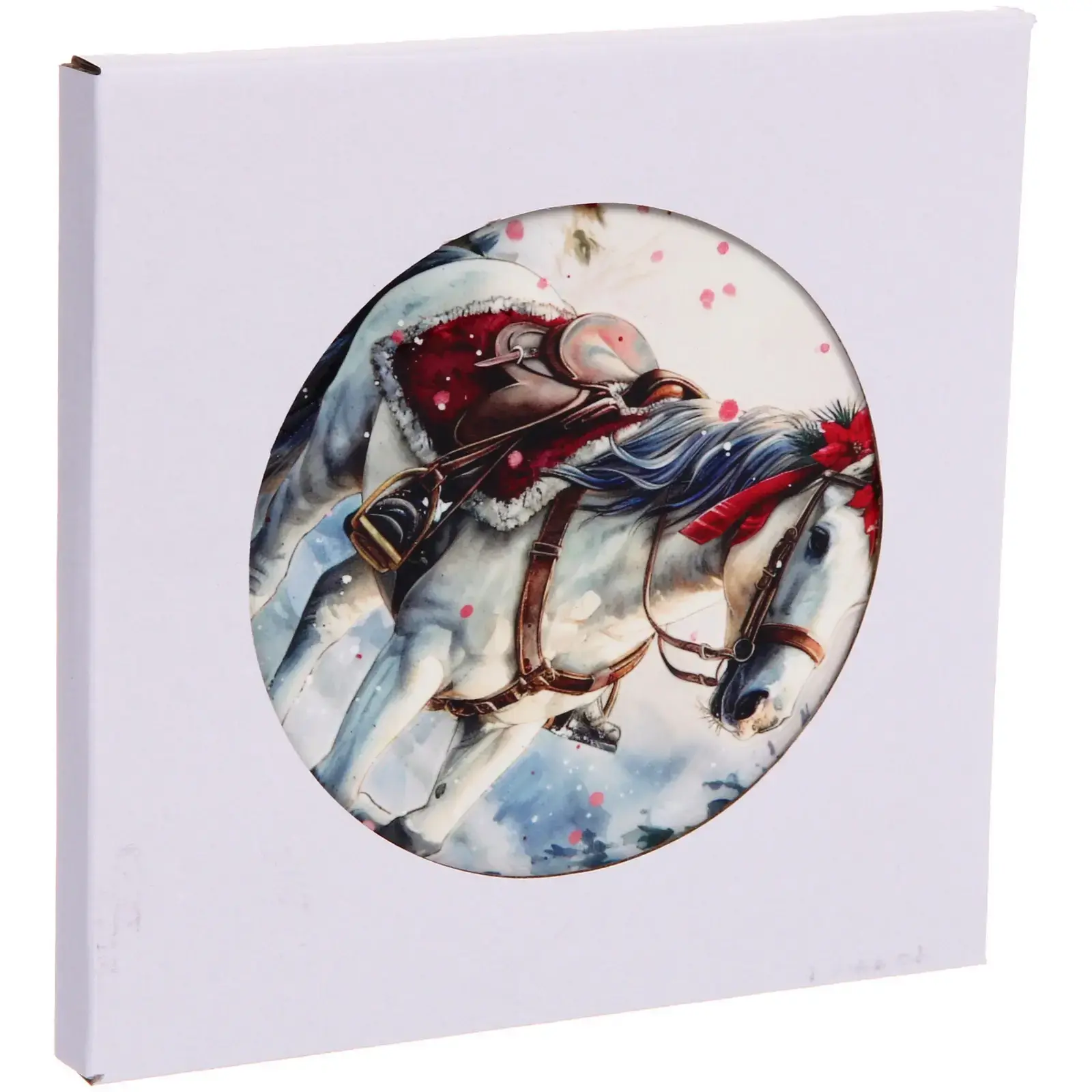 Керамическая подставка под горячее «Зимняя сказка» не только надежно защитит поверхности от высоких температур, но и станет стильным акцентом в доме. Её дизайн с изображением грациозной лошади, украшенной рождественским венком, создает атмосферу зимней магии.