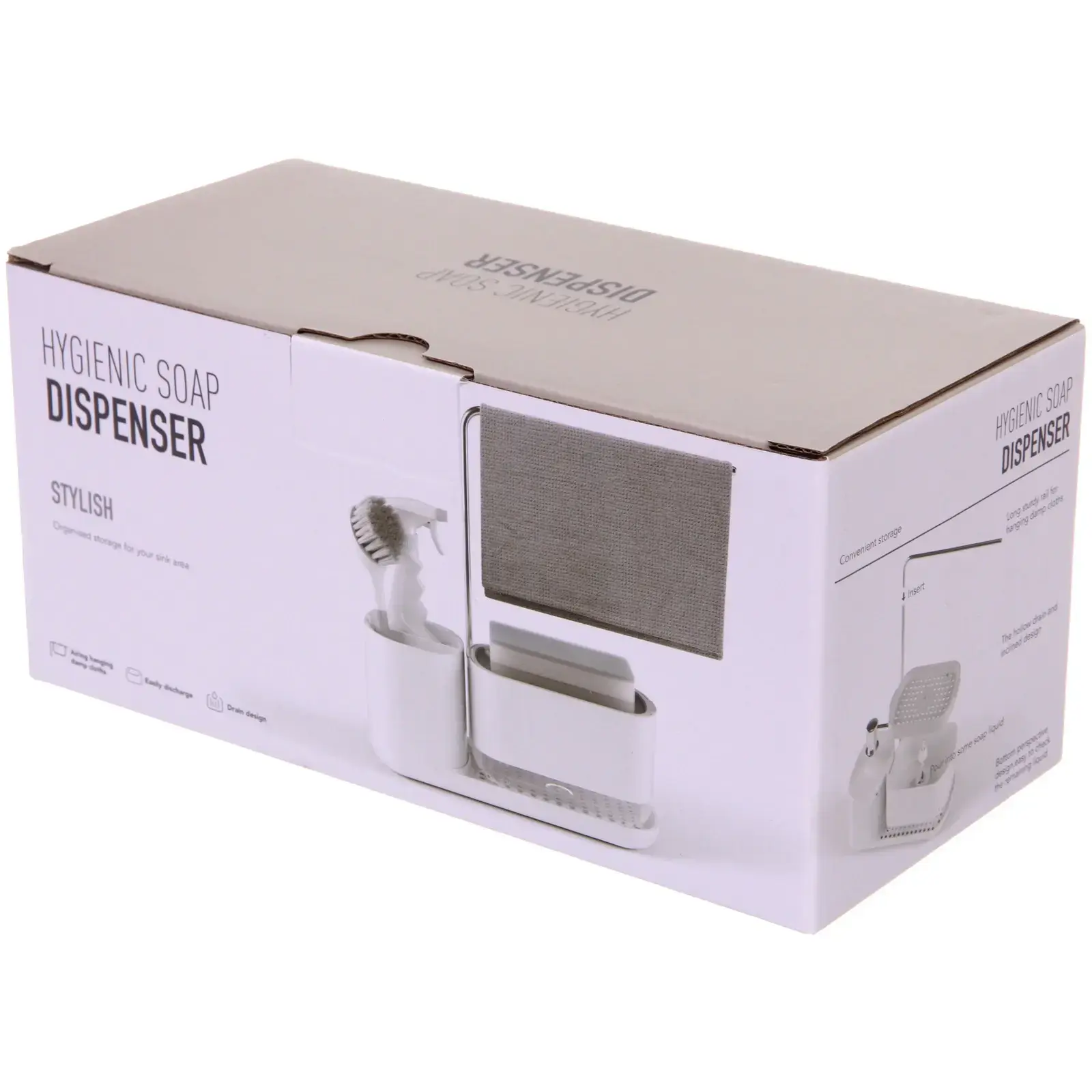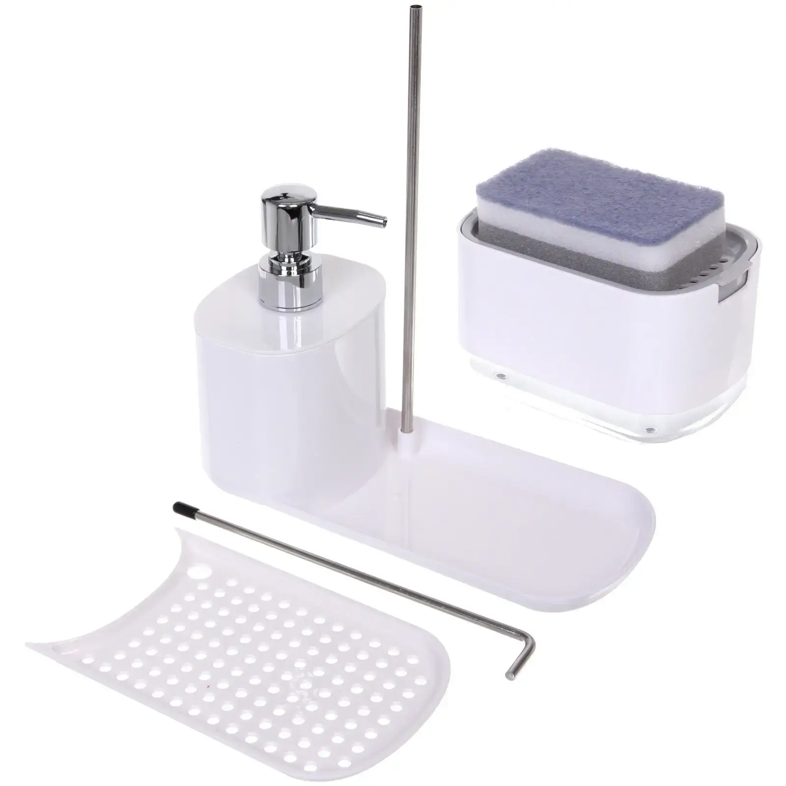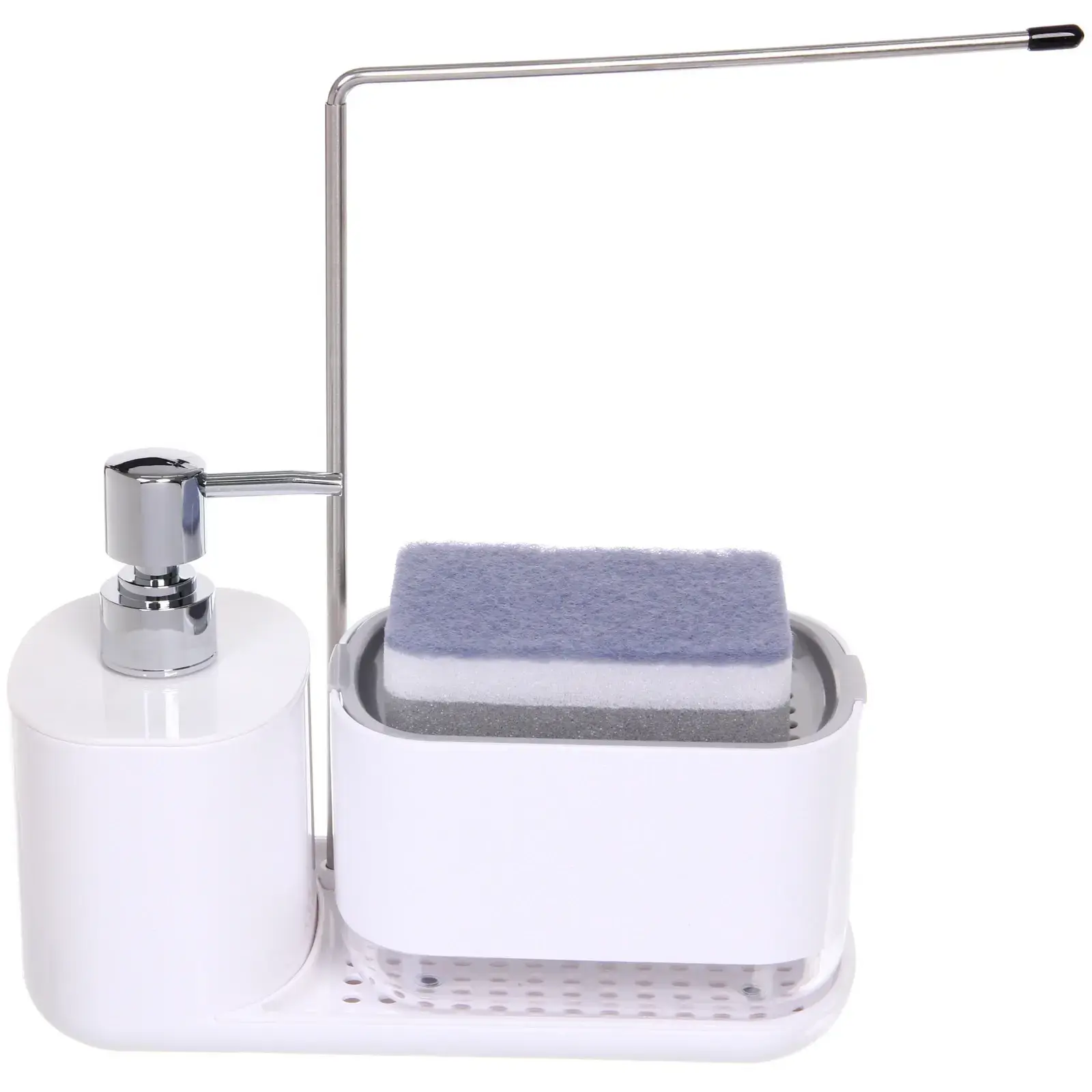 Подставка под губку с дозатором 300мл, пластик/металл, белый, 23х10.8х16см