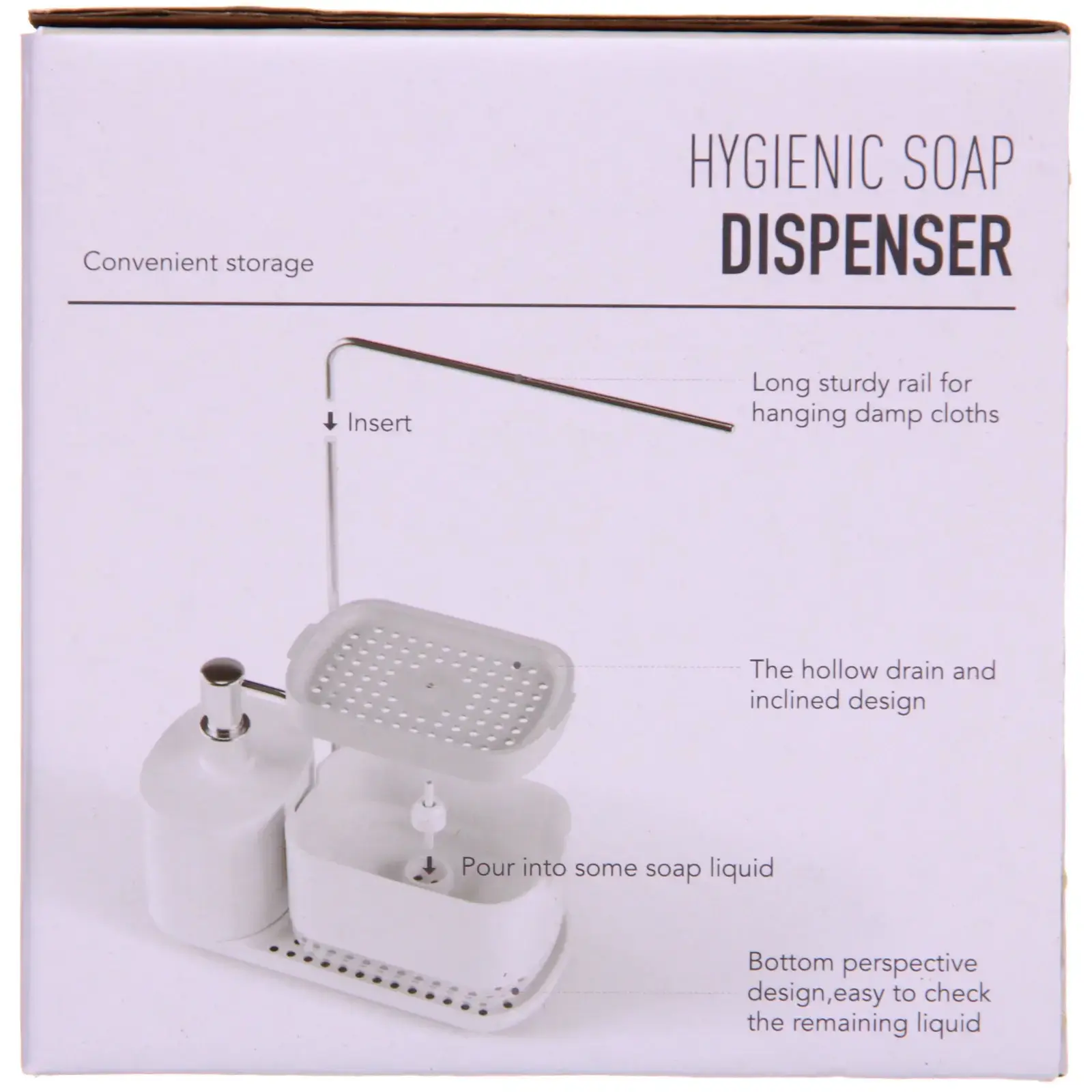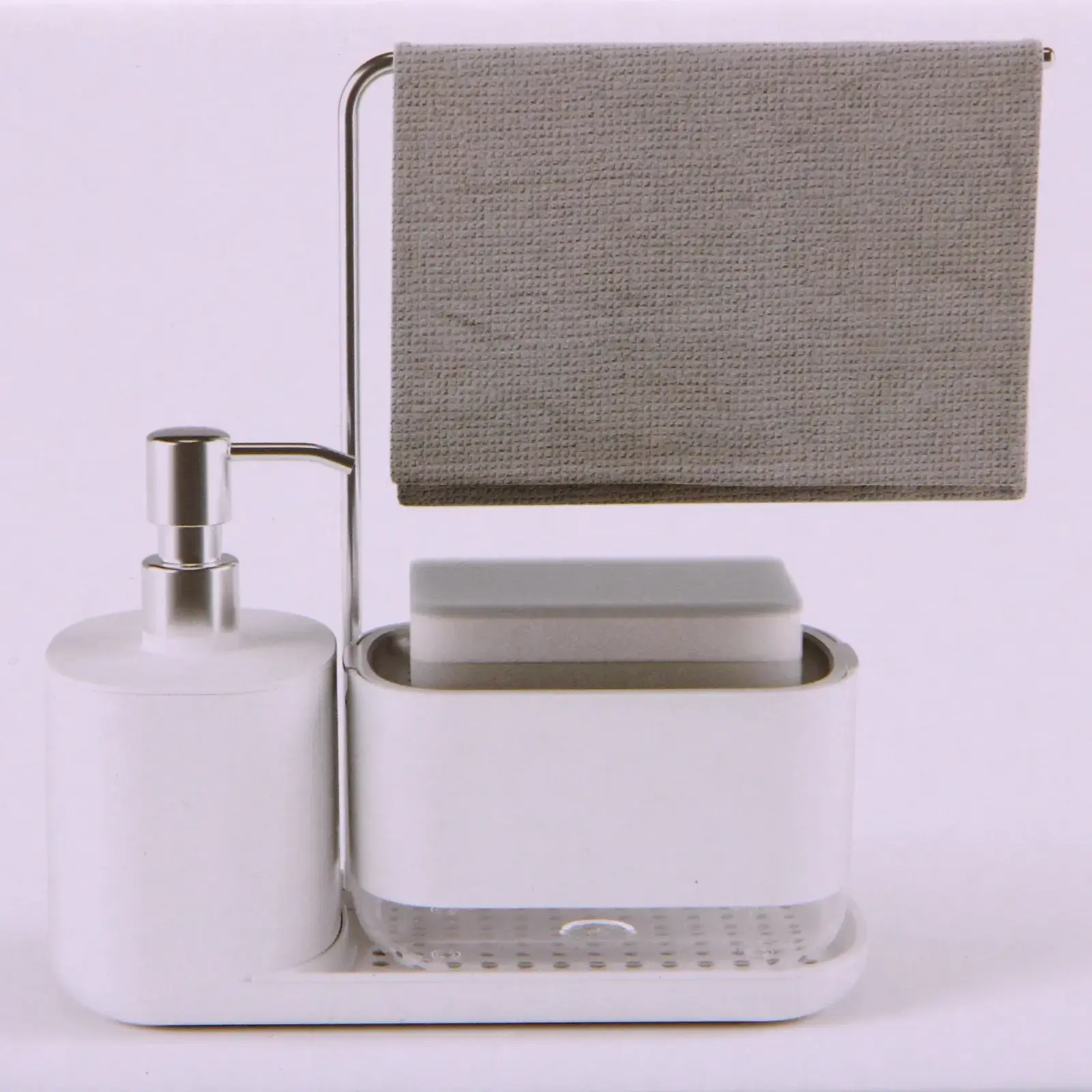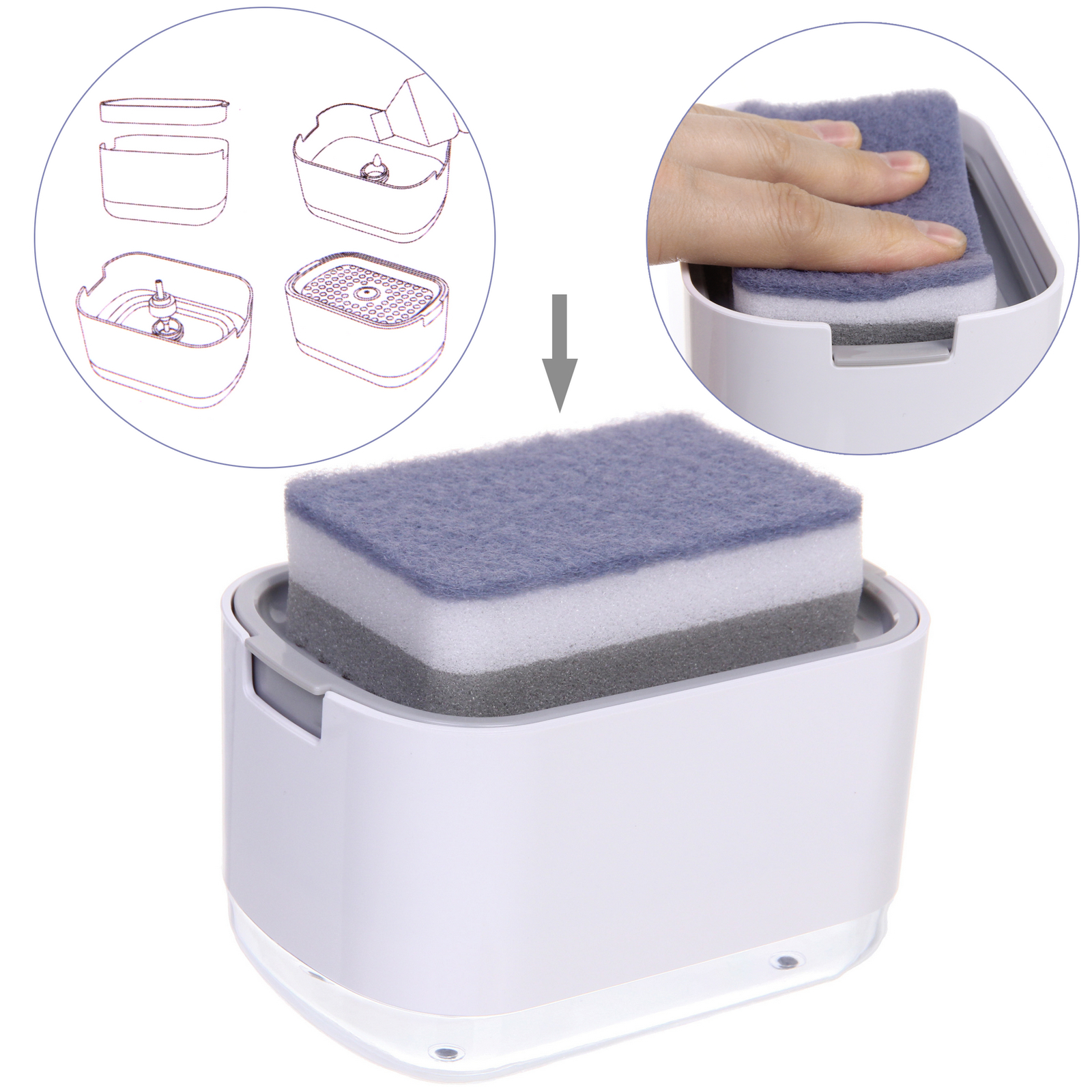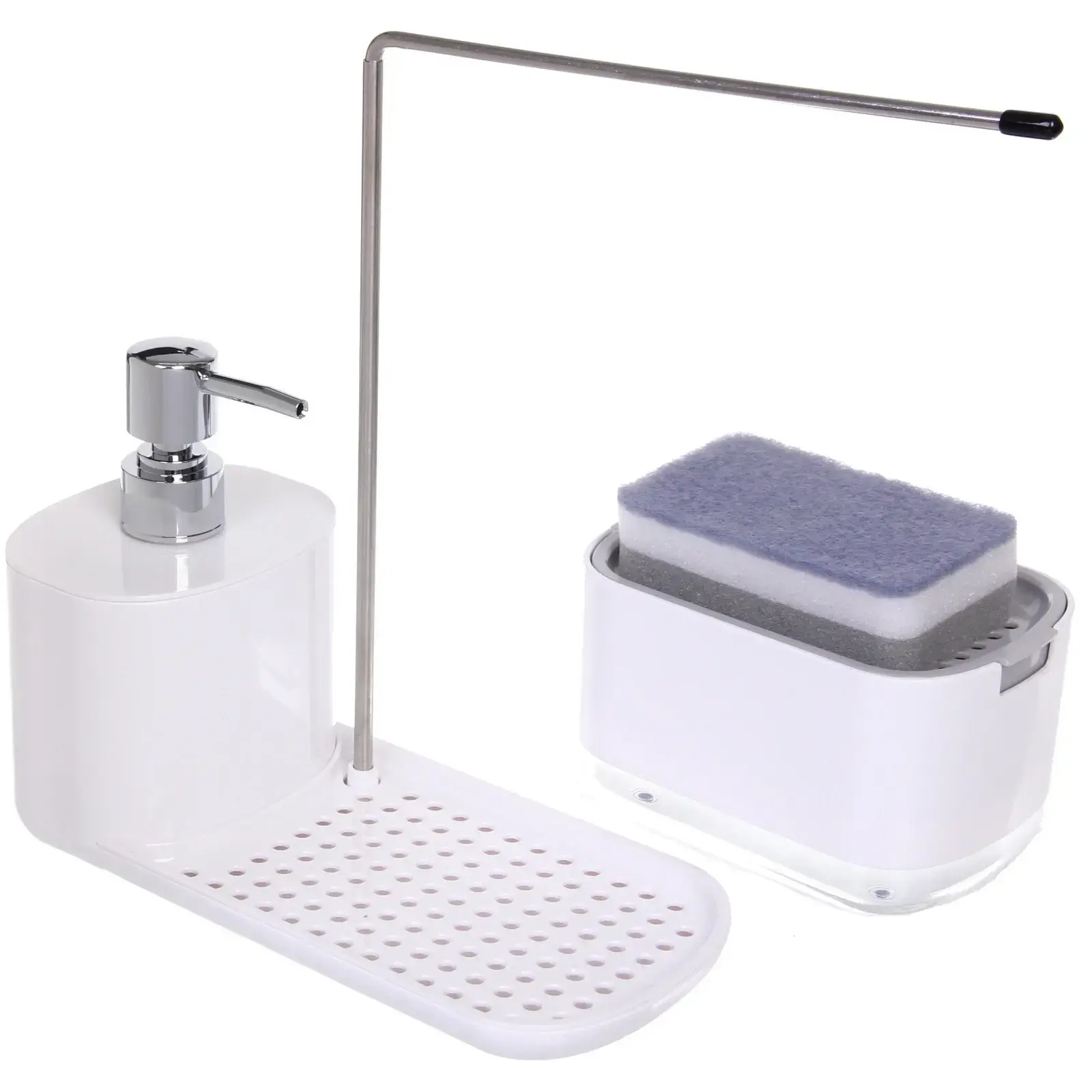 Подставка под губку с дозатором 300мл, пластик/металл, белый, 23х10.8х16см