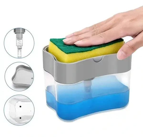 Использовать подставку очень просто: наполните дозатор жидким моющим средством, намочите губку и слегка надавите на дозатор, чтобы получить необходимое количество средства. Это устройство подходит для всех, кто ценит порядок и удобство на кухне. Губка, входящая в комплект, обеспечивает эффективное мытье посуды и уборку.