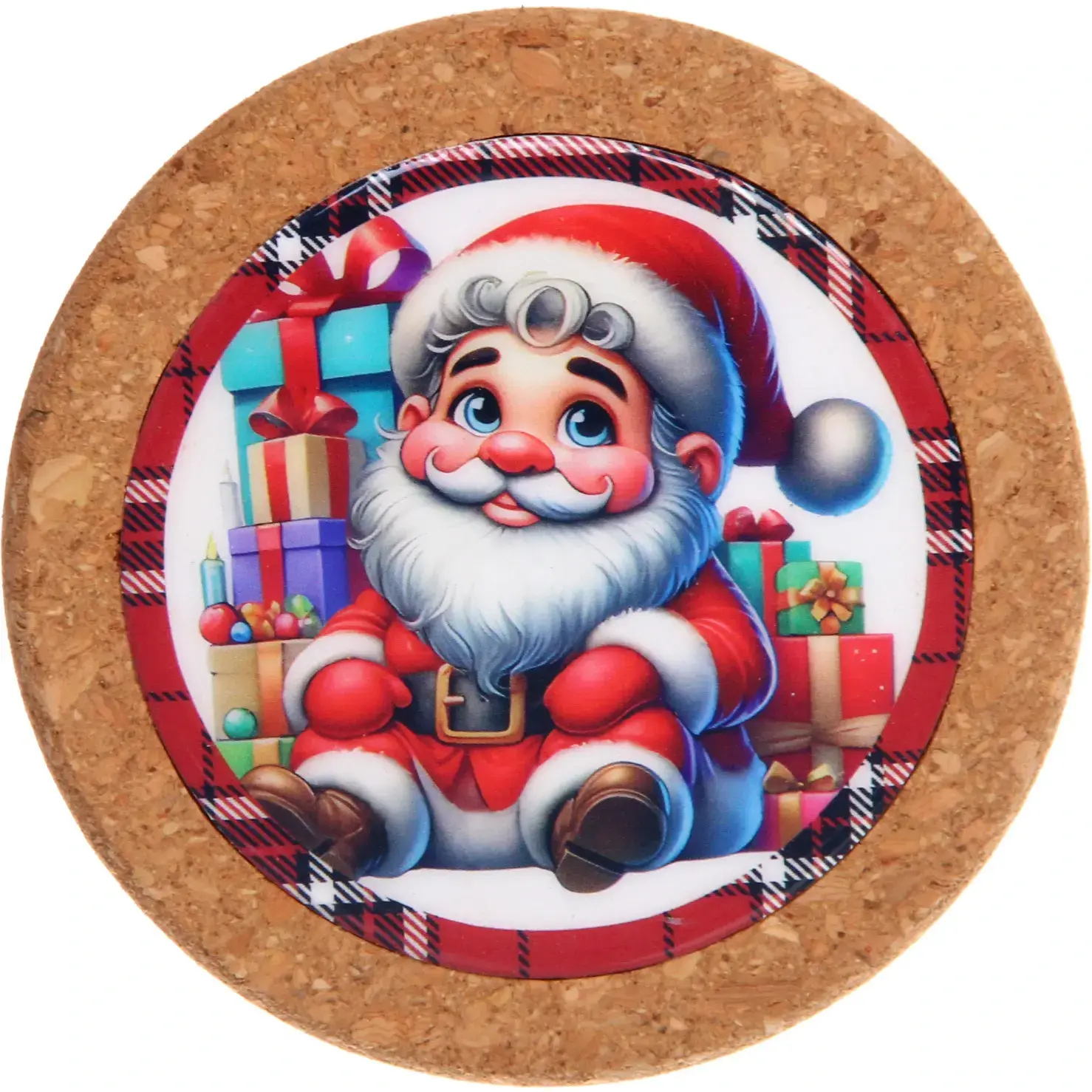 Подставка под кружку «Дед Мороз», керамика с пробкой, 10см, защита от потеков, новогодний декор