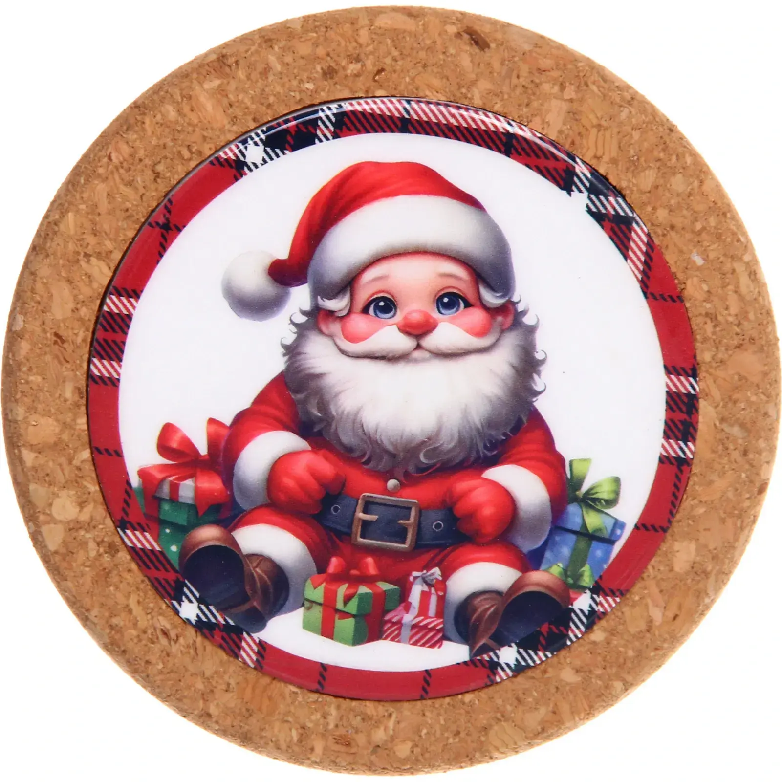 Подставка под кружку 10см, керамика/пробка, 'Дед Мороз и подарки', новогодний декор