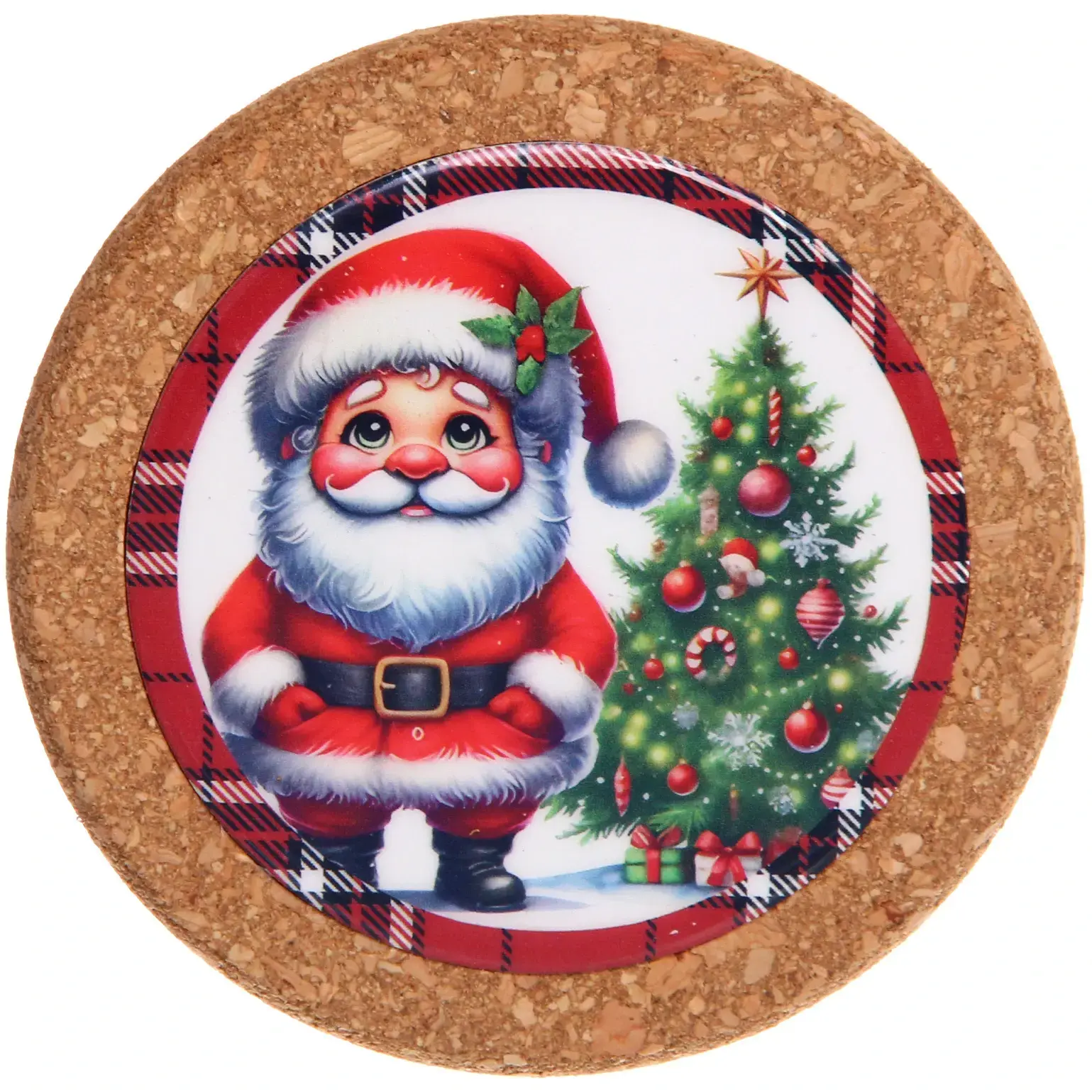 Подставка под кружку 10см «Дед Мороз у ёлки», керамика, пробка, защита стола