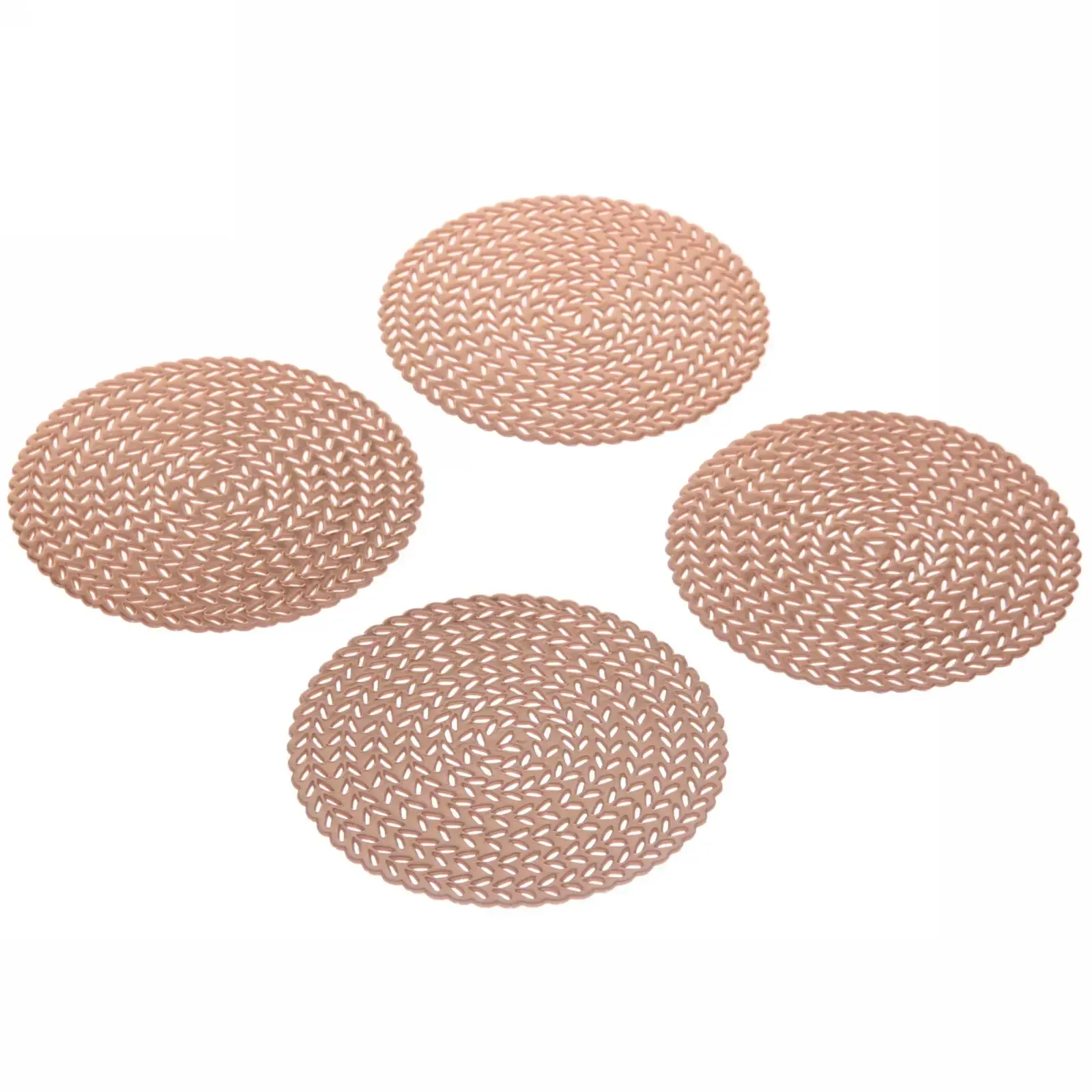 Эти подставки — идеальное решение для защиты вашей кухни. Они не только предохраняют поверхность стола от загрязнений и повреждений, но и добавляют стильный акцент в интерьер. Изготовленные из прочного ПВХ, подставки имеют уникальный дизайн с текстурой, имитирующей плетение, что делает их не только функциональными, но и эстетически привлекательными.