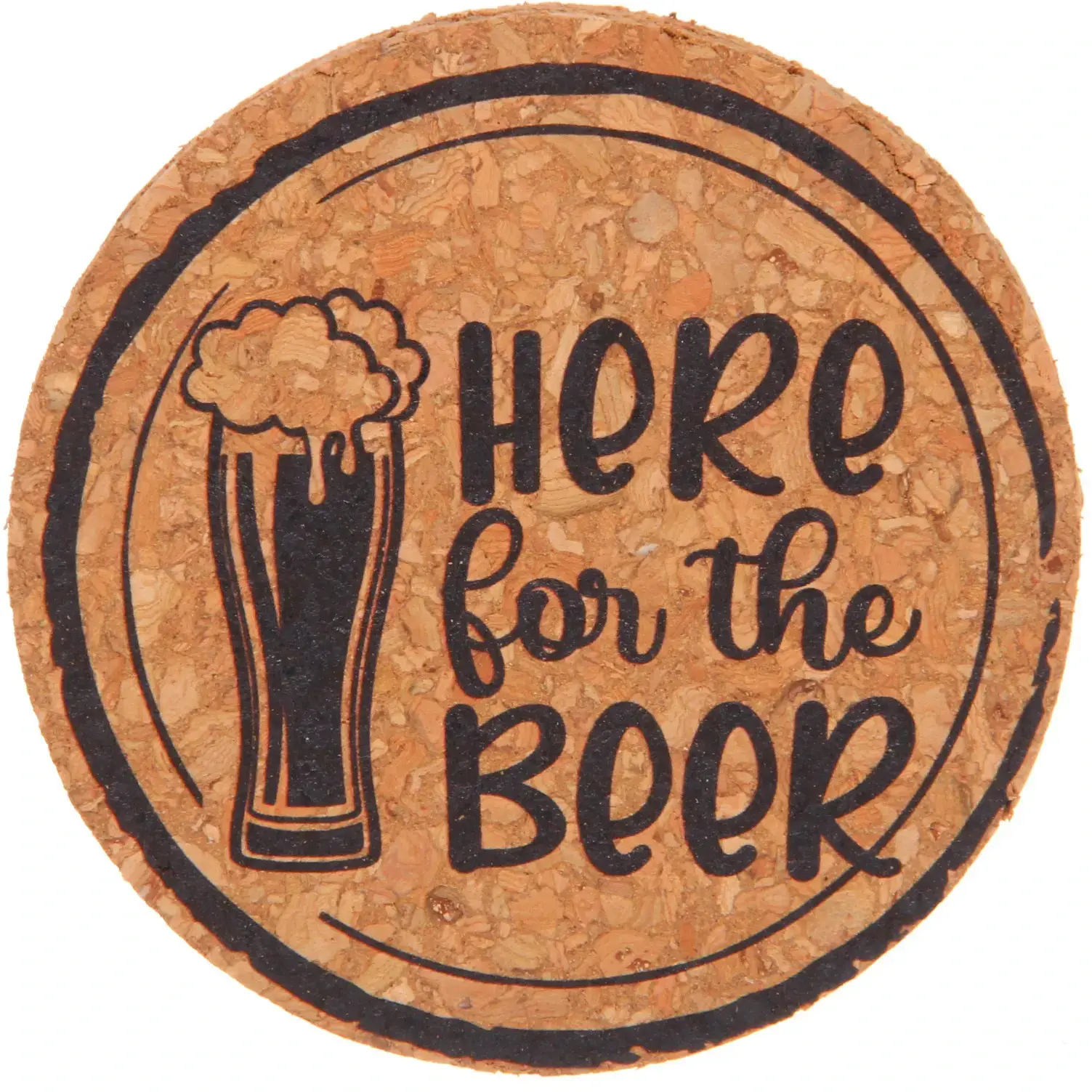 Подставка под кружку 9 см из пробки, круглая с надписью «HERE for the BEER»