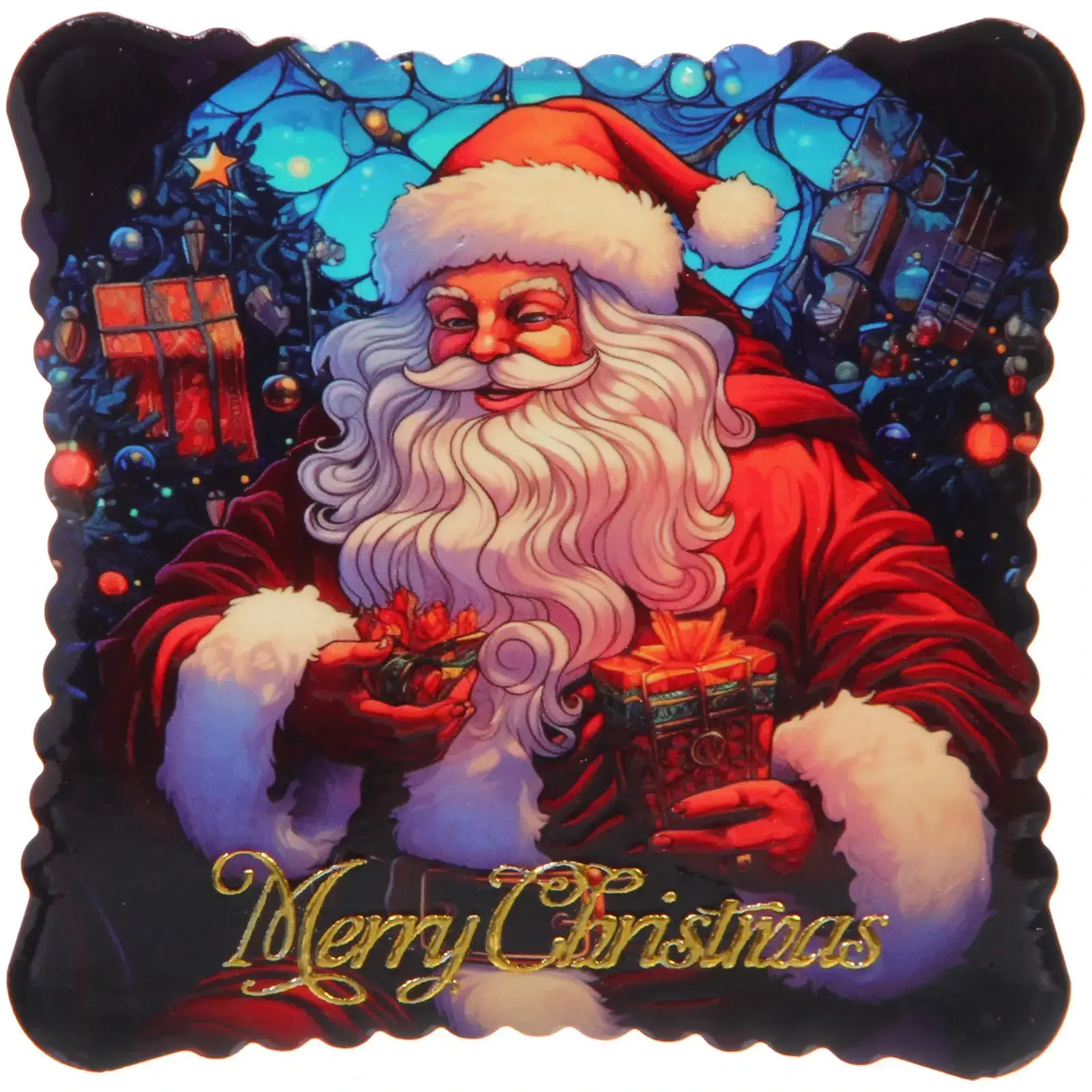 Подставка имеет квадратную форму с округлыми углами, что добавляет ей элегантности. Яркие цвета и праздничный дизайн делают её идеальным элементом декора для новогодних праздников. Не упустите возможность сделать ваш стол более уютным и стильным с этой замечательной подставкой!