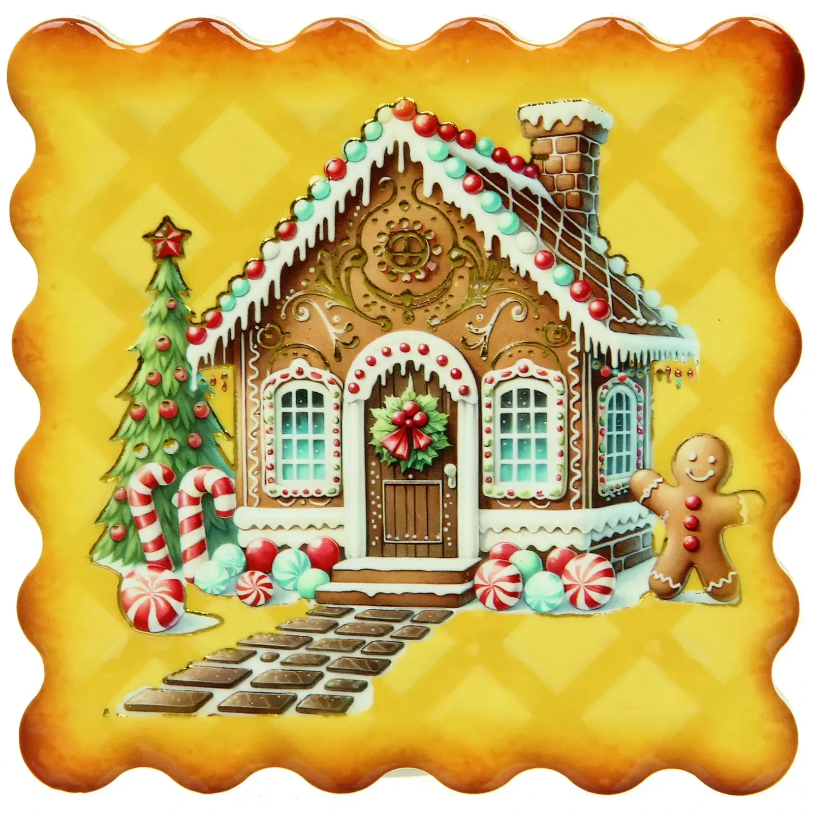 Подставка под кружку «Печенька» не только защитит вашу мебель от горячих следов и потеков, но и наполнит дом теплом новогодней сказки. Её дизайн в виде пряничного домика со сладостями подарит радость и станет прекрасным дополнением зимнего декора.