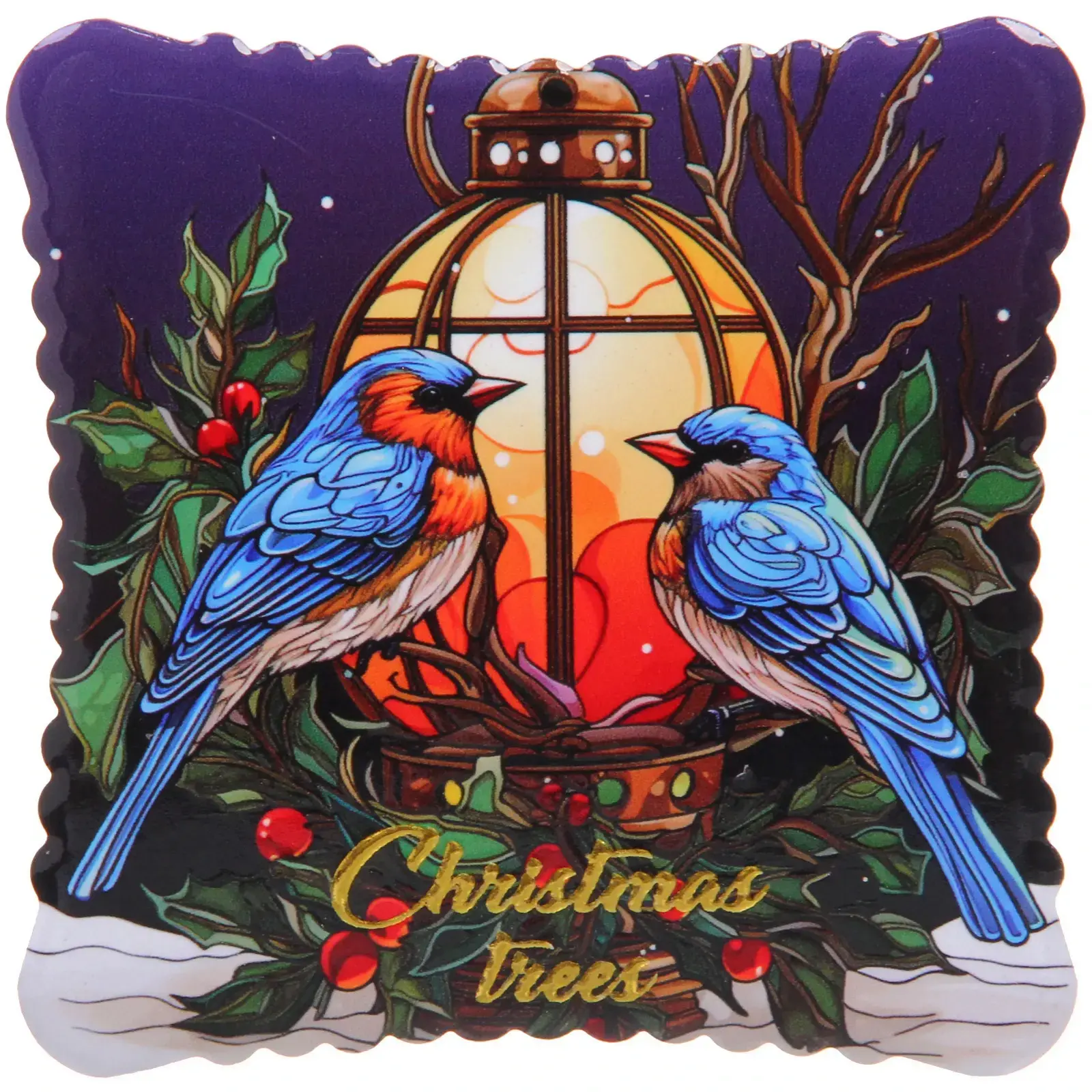 Подставка под кружку керамическая 10,5х10,5см «Зимние птицы», защита стола, зимний дизайн