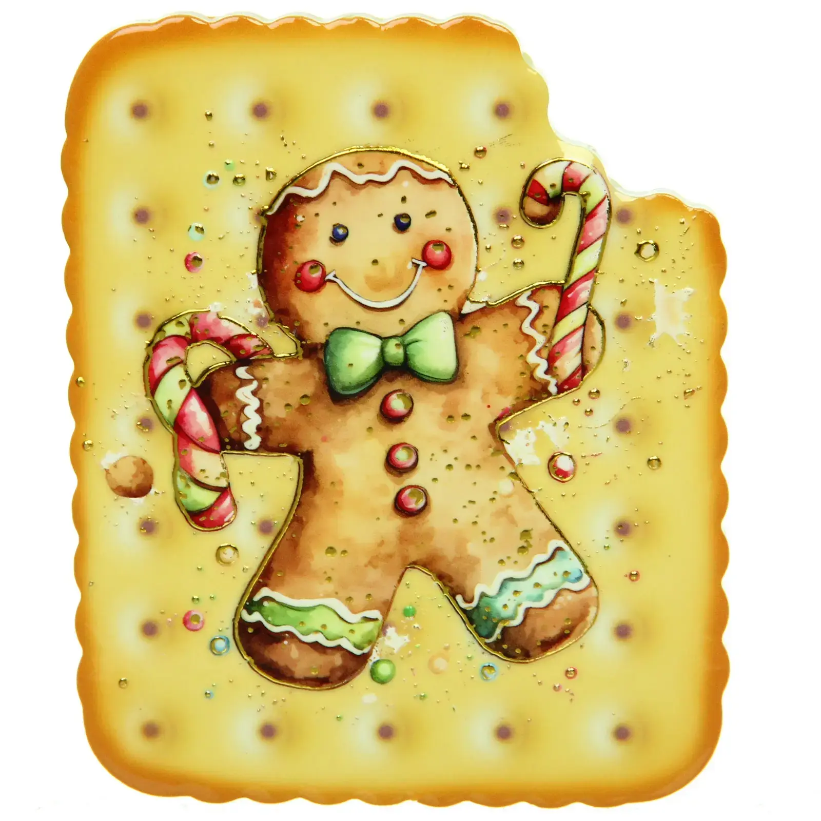 - Дизайн: новогодний пряничный человечек с леденцами