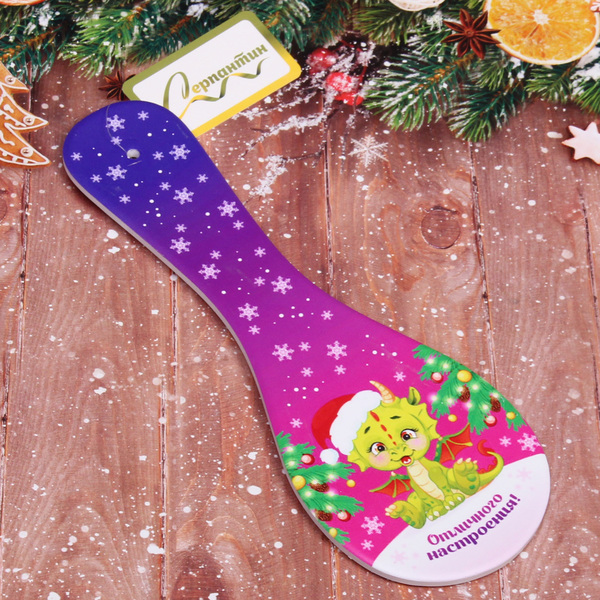 Подставка подходит для использования с различными кухонными приборами, включая ложки, шумовки и половники. Благодаря компактным размерам, она не займет много места на столе, а яркий градиентный цвет и изображение дракона в новогоднем колпаке добавят веселья в процесс приготовления пищи. Подставка идеально подходит для тех, кто ценит комфорт и стиль на кухне.