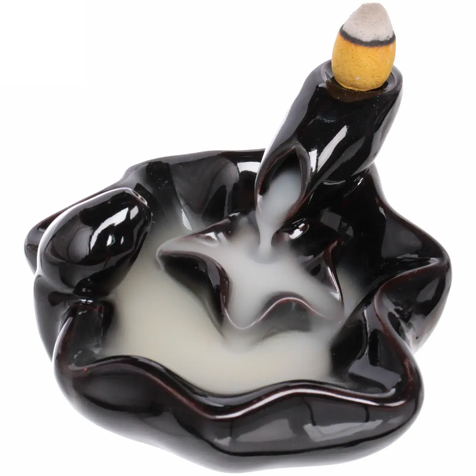 Эта подставка не только украшение, но и функциональный элемент для ароматерапии, способствующий улучшению настроения и снятию стресса. Материал — обожжённая керамика с глянцевой глазурью, что гарантирует долговечность и легкость очистки. Размер 10,2×10×6,2 см идеально подходит для разных видов благовоний и добавляет изящества вашему интерьеру.