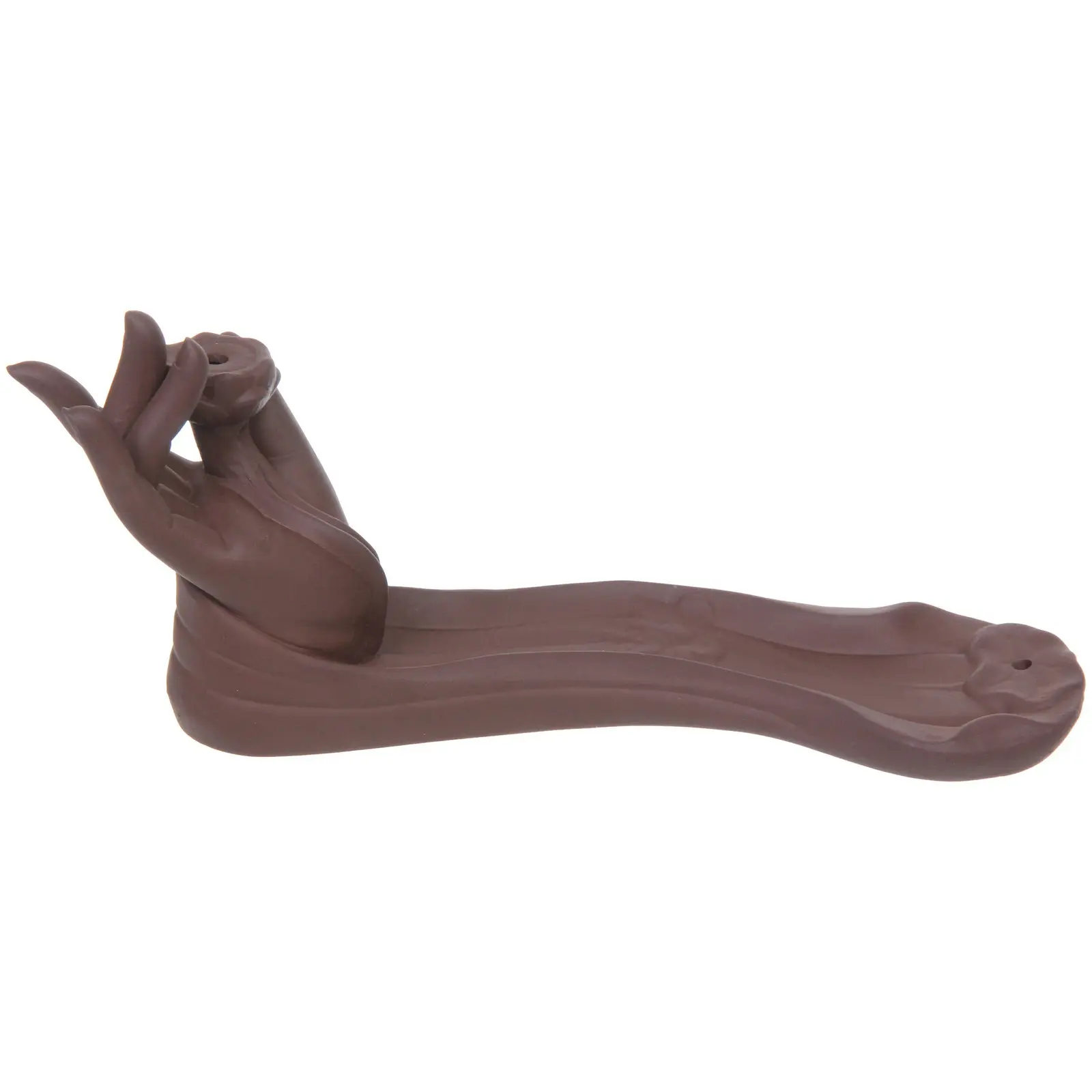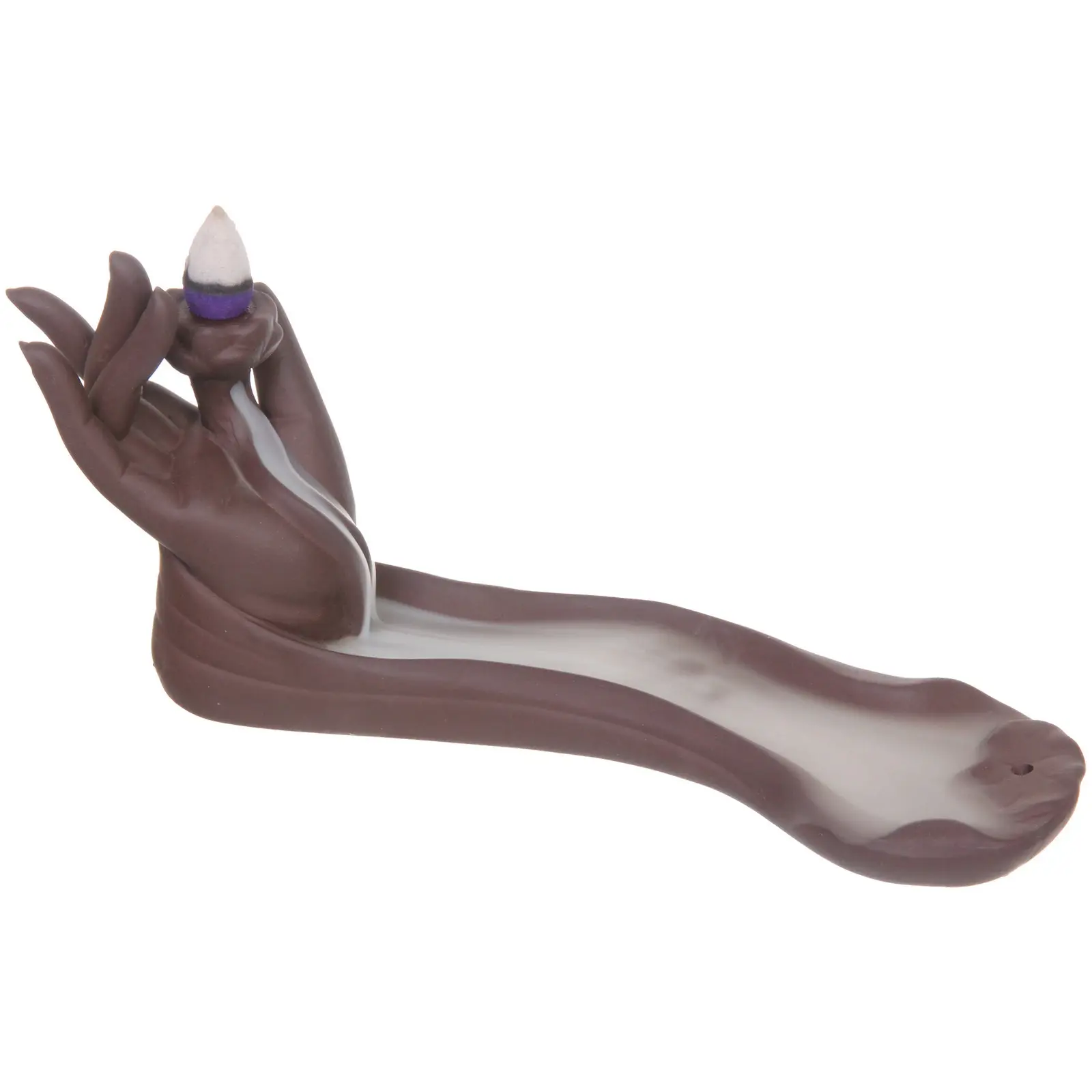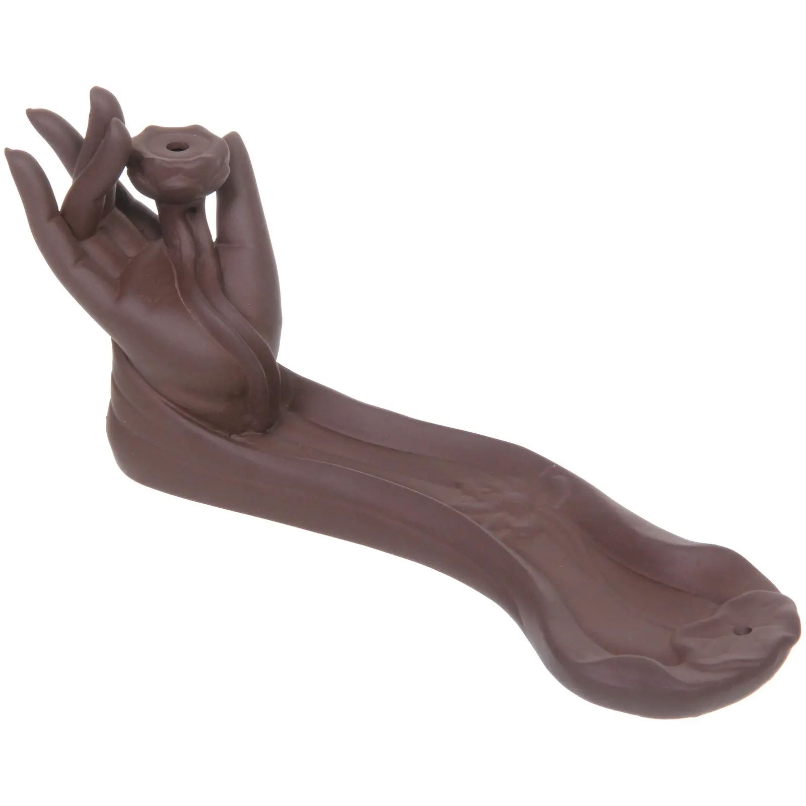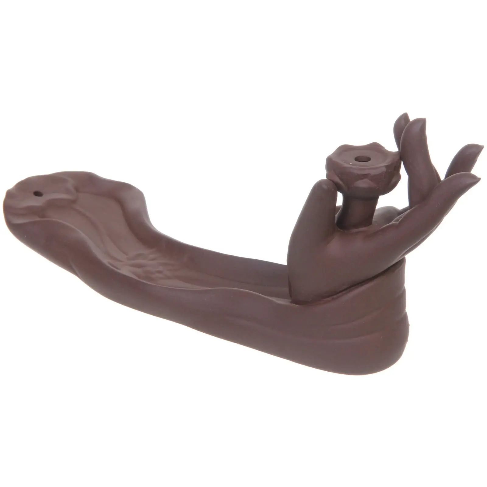 Создайте атмосферу уюта и релакса с помощью этой изящной керамической подставки, имитирующей руку, которая красиво держит ароматические благовония в форме пули. Тонкая глазурь и изящный дизайн делают её не только функциональной, но и ярким украшением интерьера.