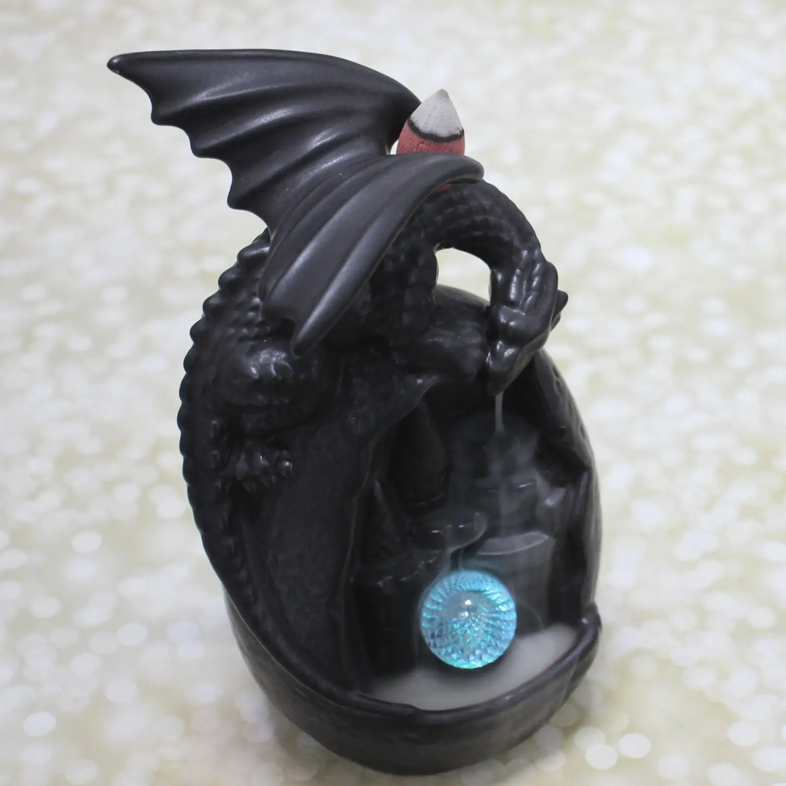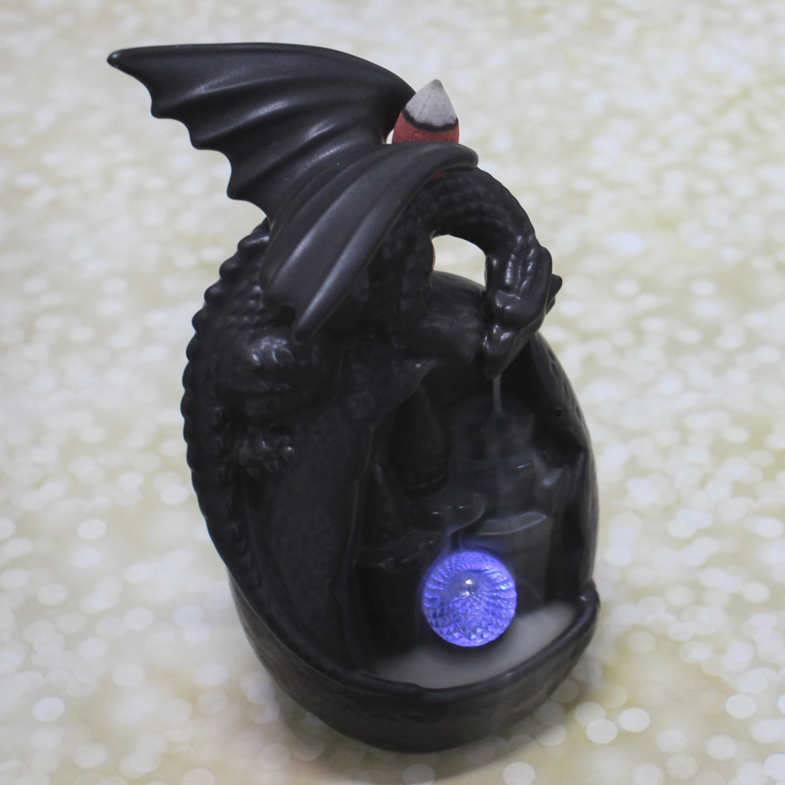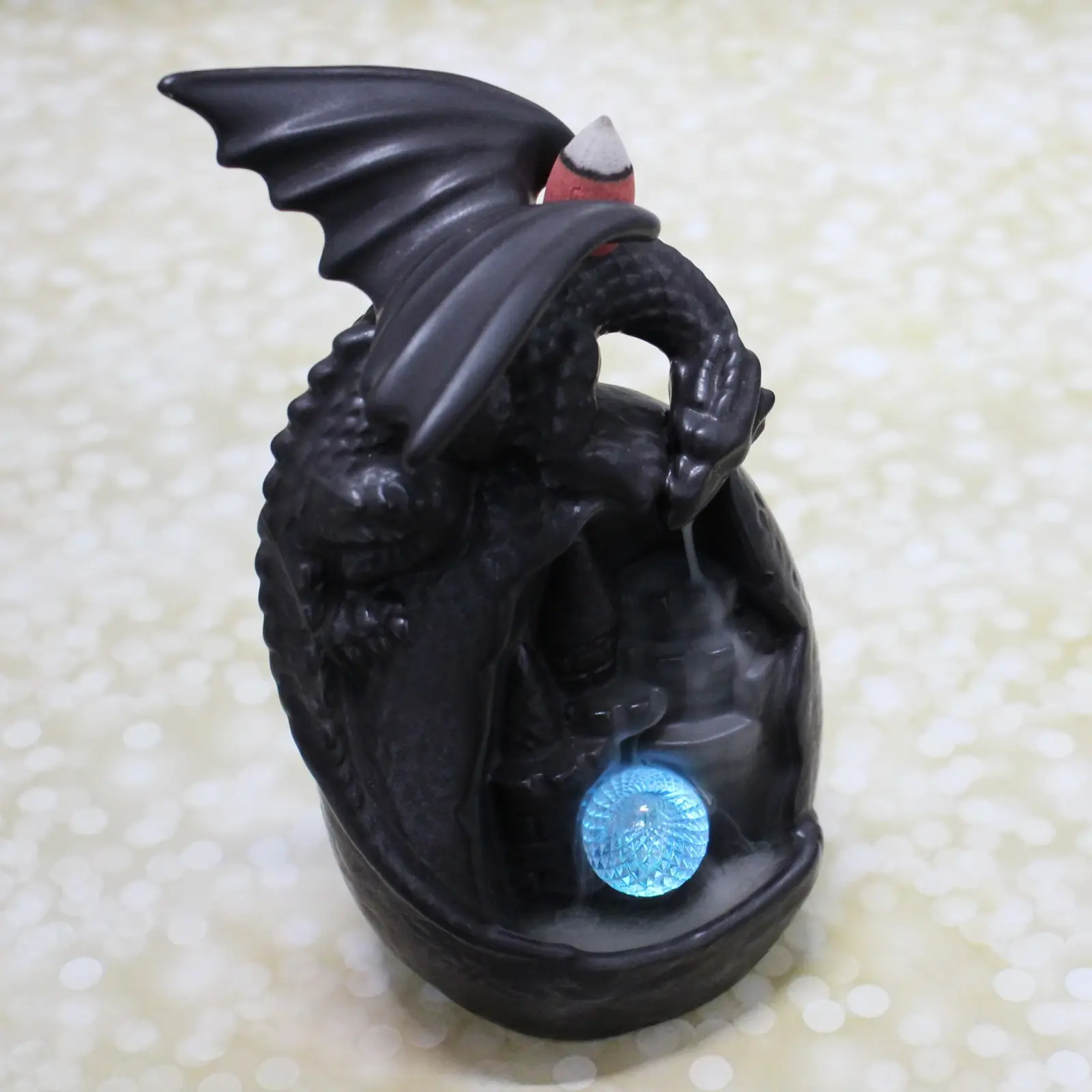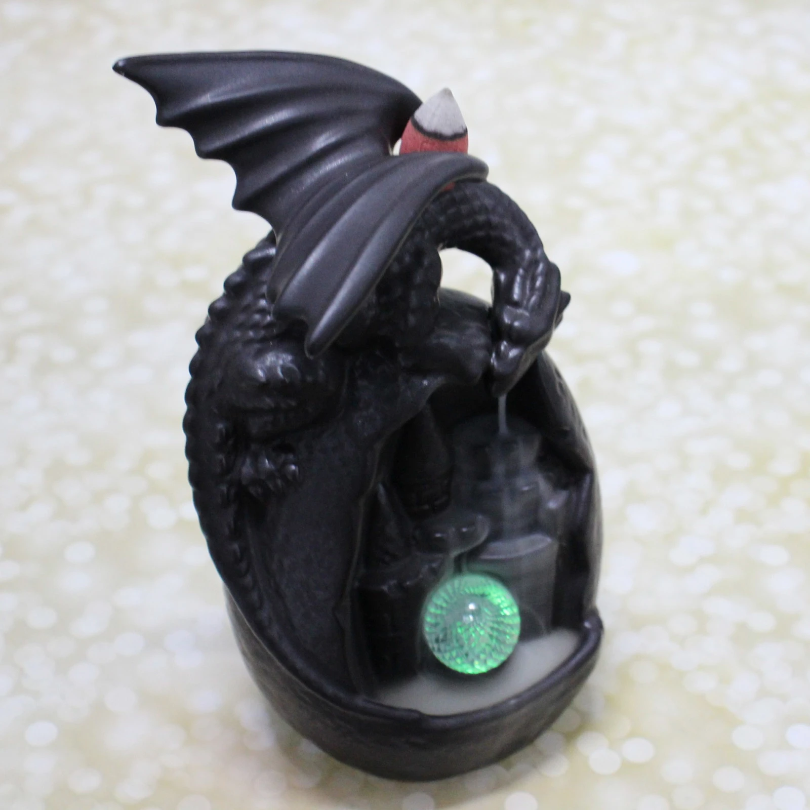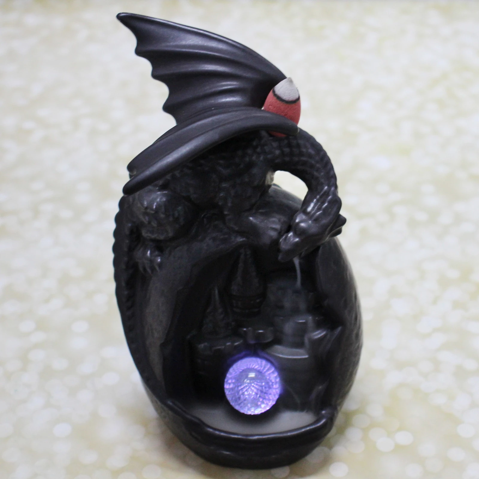 Преимущества: эстетичный дизайн с фигуркой дракона и подсветкой создает особую атмосферу; яркое исполнение подходит в любой интерьер; долговечный материал обеспечивает надежность; компактный размер — 10х9х19 см — легко размещается в любом месте; универсальный стиль гармонично сочетается с классикой и современностью.