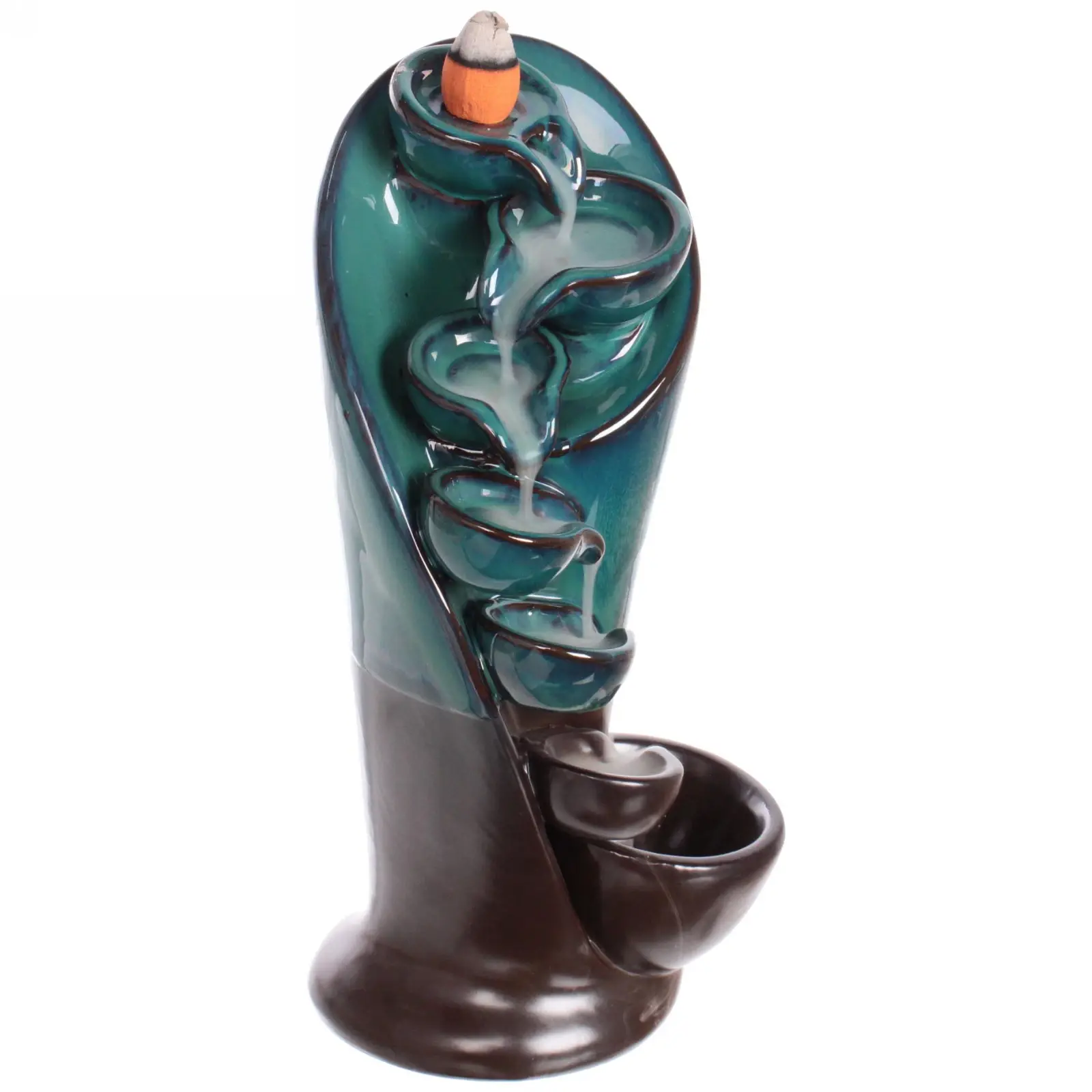 Эта керамическая подставка с эффектом каскадного водопада идеально подходит для стелющихся благовоний-цилиндров, при сгорании которых дым струится вниз, создавая завораживающий визуальный эффект. Ее устойчивость и качественные материалы обеспечивают долговечность и безопасность эксплуатации.