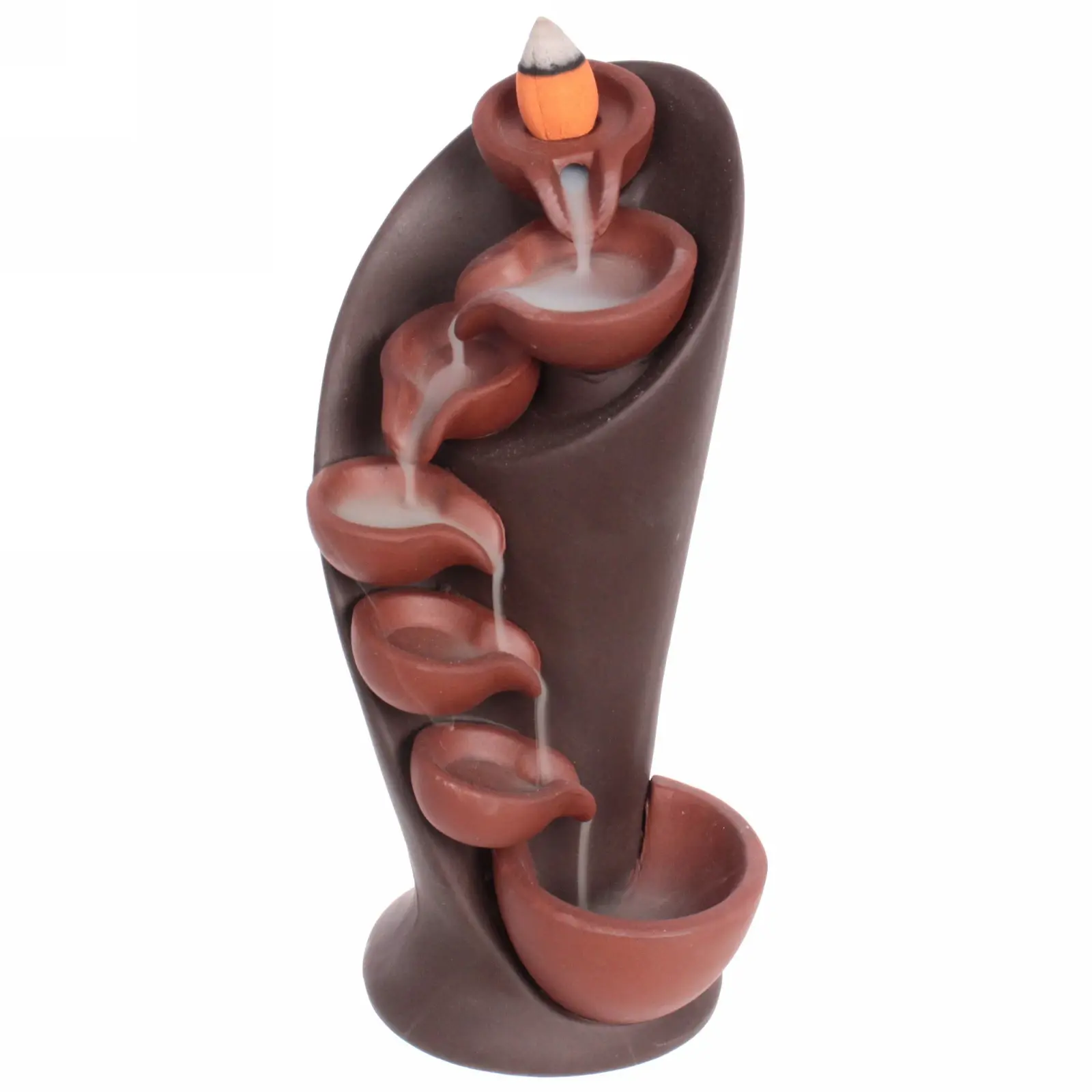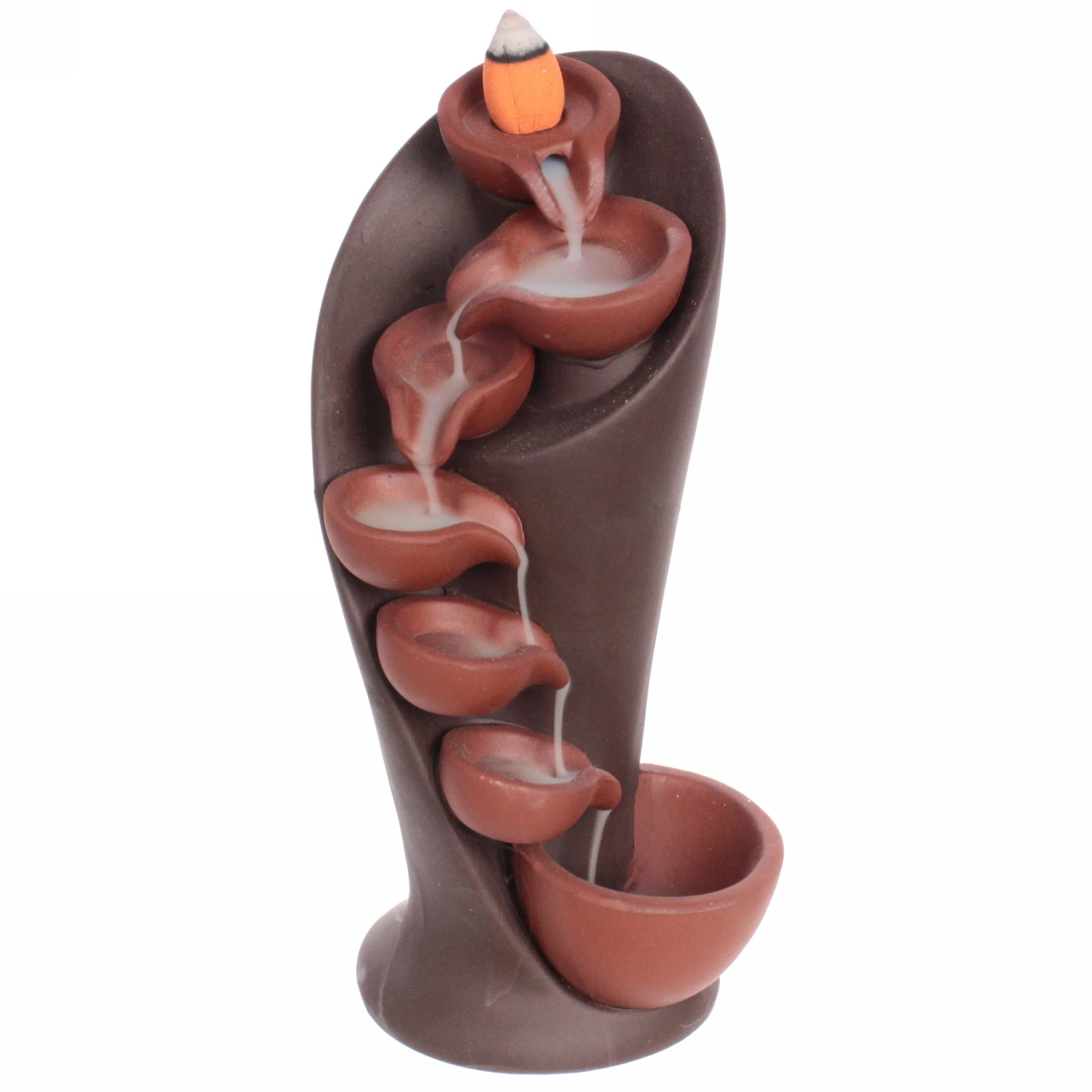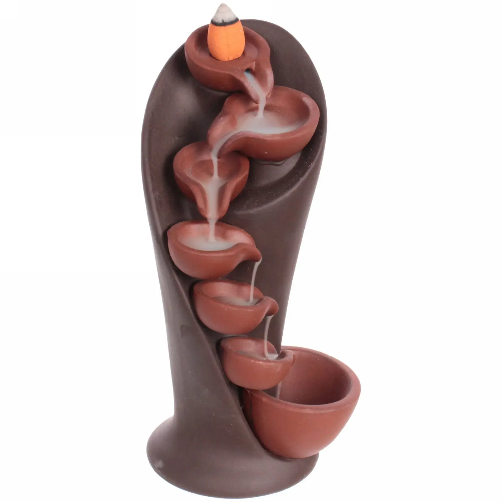 Эта изящная подставка для стелющихся благовоний предоставляет уникальную возможность создать в комнате атмосферу спокойствия и уюта. Благодаря специальной конструкции и эффекту водопада, дым живописно ниспадает по каскаду чаш, вызывая эффект релаксации и антистрессового расслабления.