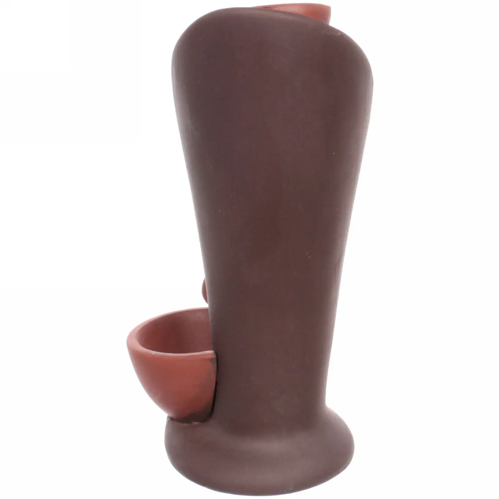 Изготовлена из обожженной керамики с глазурью, которая обеспечивает долговечность и красивый внешний вид. Размеры 11х10х20 см позволяют легко разместить ее на любой поверхности — тумбочке, столе или полке. Благодаря насыщенному коричневому цвету, подставка уютно вписывается в любой дизайн помещения, добавляя в него нотки восточной эстетики и тёплого уюта.