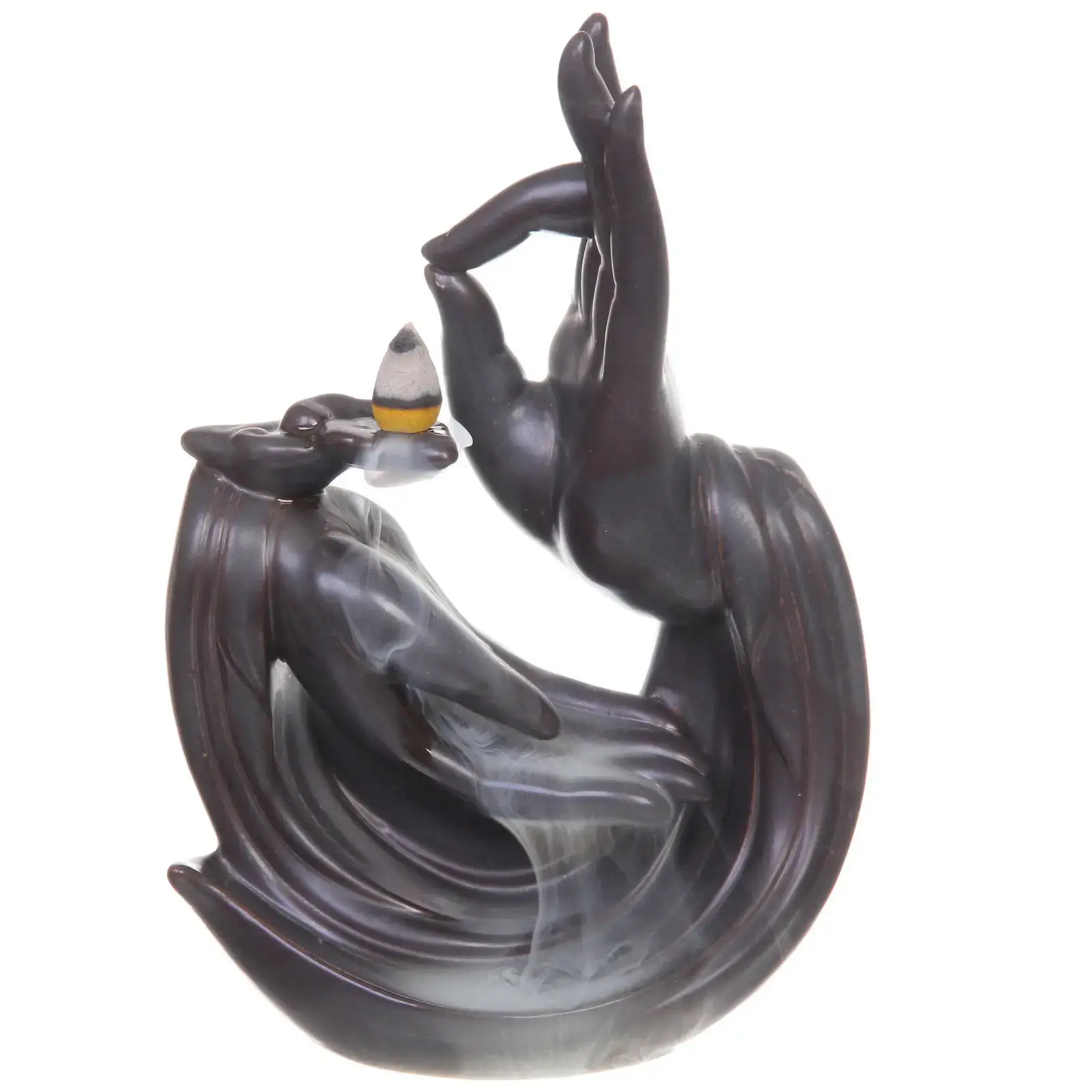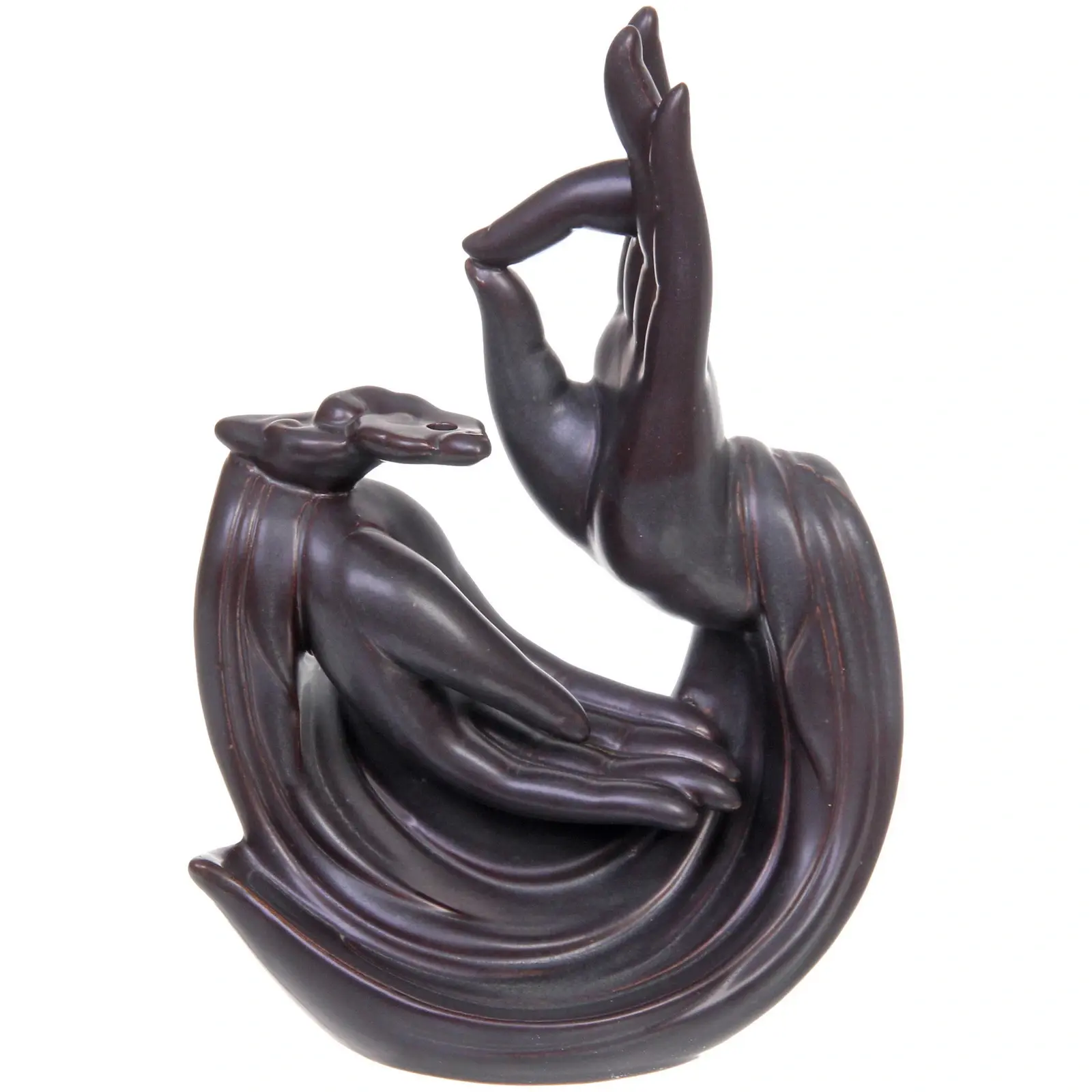 Эта керамическая подставка создана для эстетичного и безопасного использования стелющихся благовоний в домашних условиях. Благодаря изящной форме руки, она не только служит функциональным держателем для ароматических конусов, но и превращается в стильный элемент декора, создающий уют и расслабление. Подстановка идеально подходит для любителей аромотерапии и релаксации, помогает подчеркнуть гармонию интерьера.