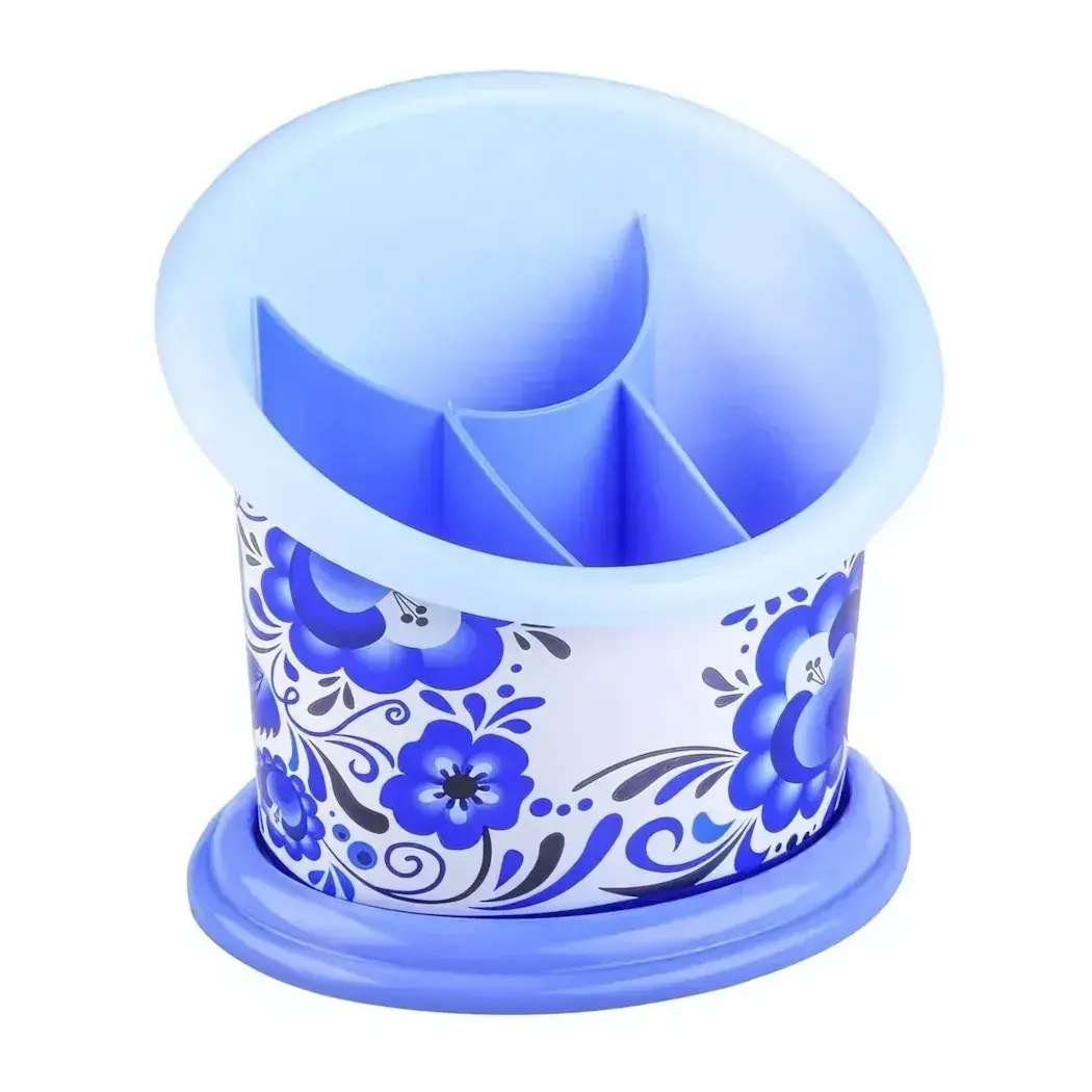 Подставка под столовые приборы 'Флорель', пластик, цвет голубой/белый